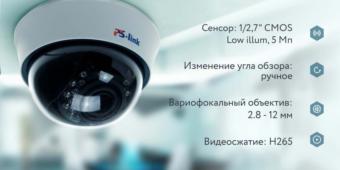Купольная камера видеонаблюдения IP 5Мп PS-link IP305R с вариофокальным объективом интересное:
