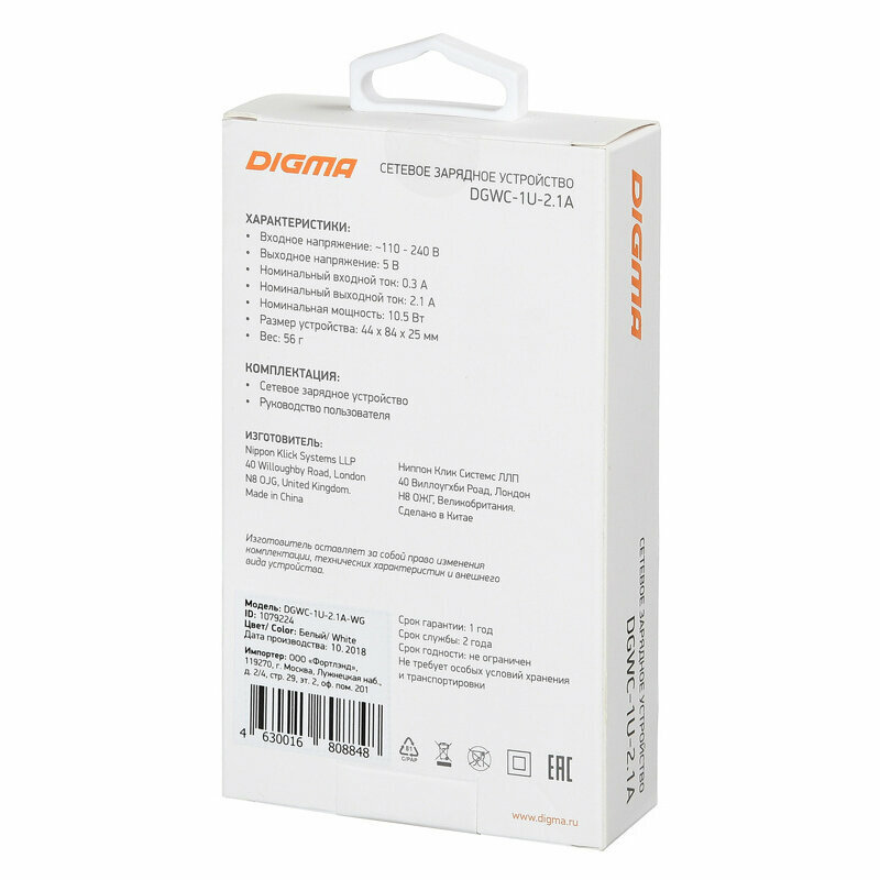 Ниже Вы можете прочитать отзывы на Сетевое зарядное устройство Digma DGWC-1U-2.1A-WG, USB, 10.5Вт, 2.1A, белый, ознакомится с подробными характеристиками, посмотреть интересные обзоры и фотографии на Сетевое зарядное устройство Digma DGWC-1U-2.1A-WG, USB, 10.5Вт, 2.1A, белый.