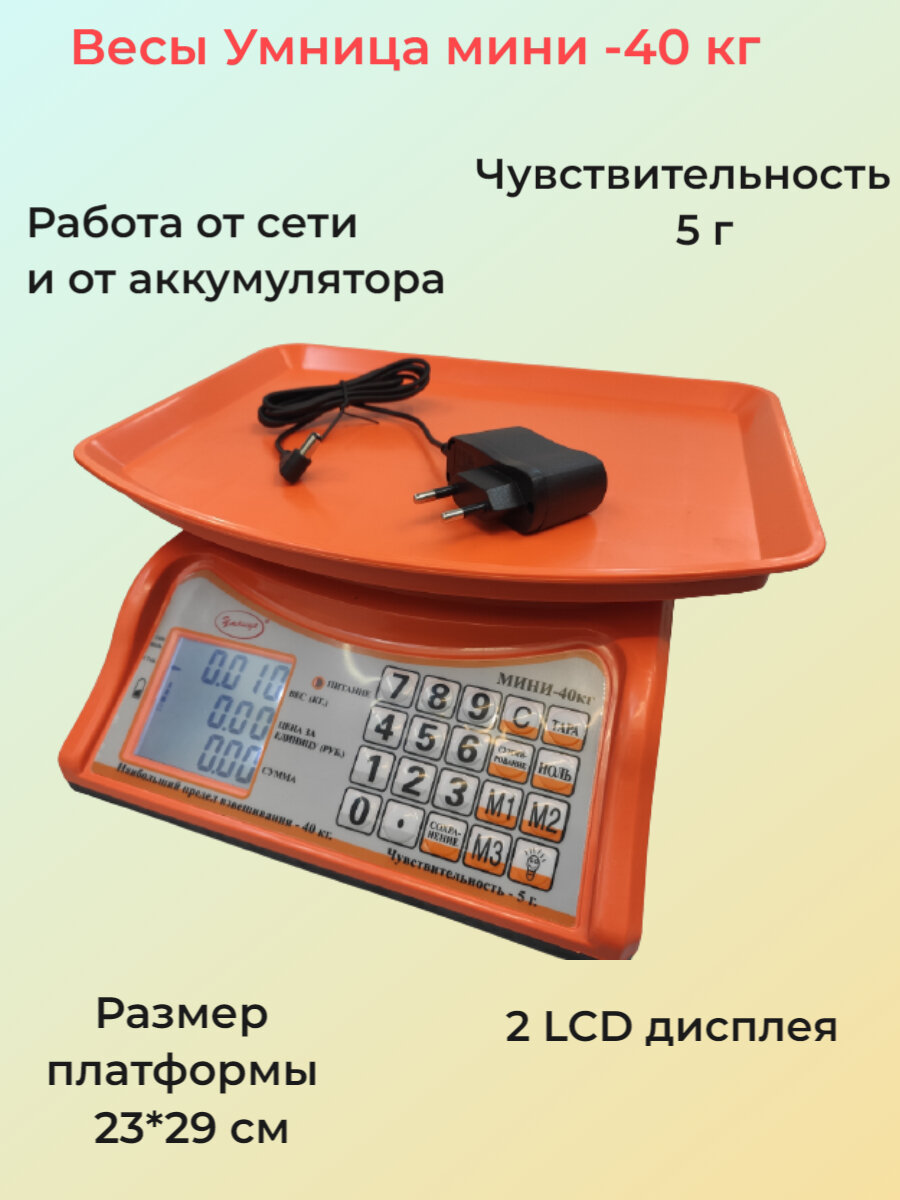 Весы электронные торговые 2 дисплея "Умница" МИНИ-40 кг интересное: