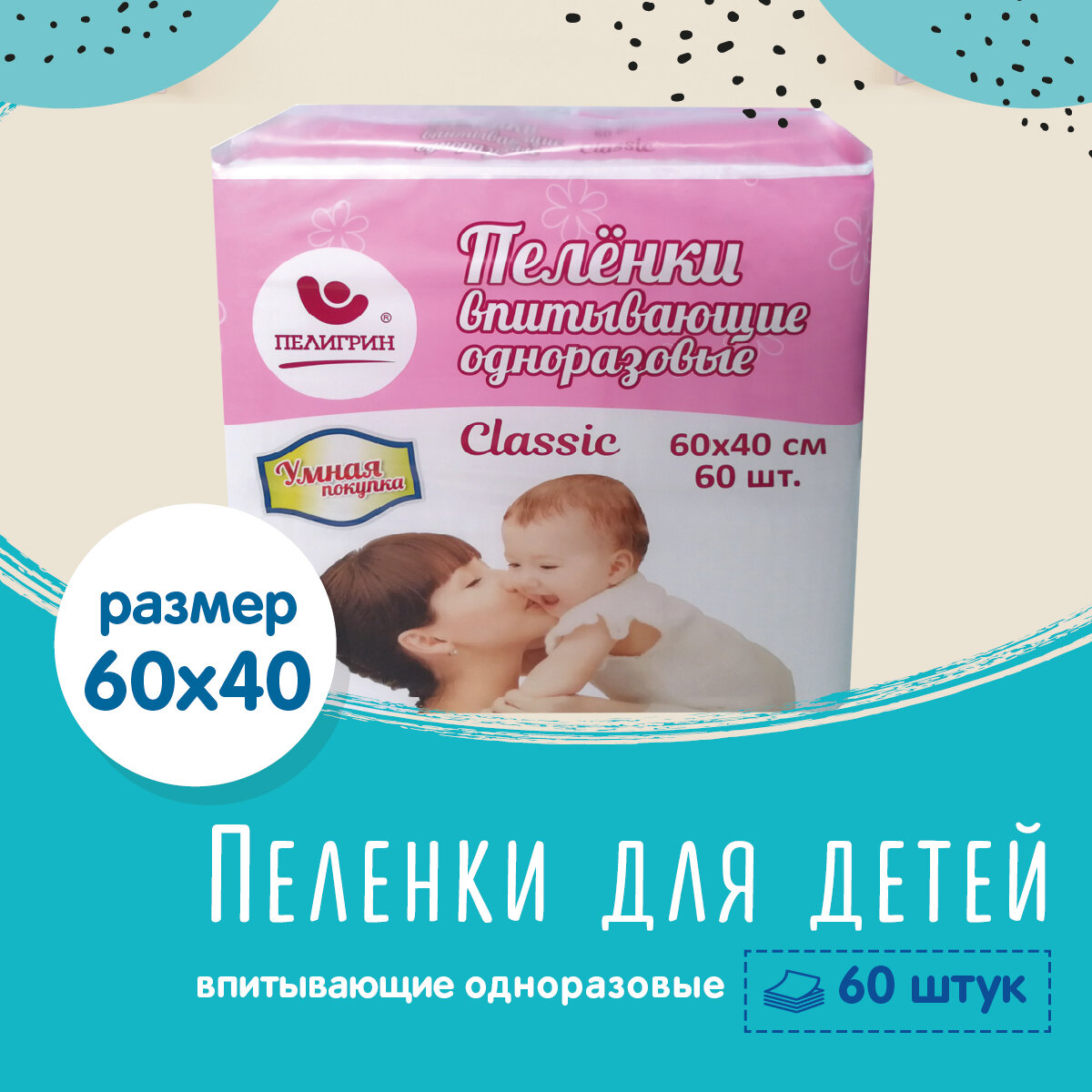 Одноразовые пеленки Пелигрин Умная покупка Classic 60х40 см, 60шт.