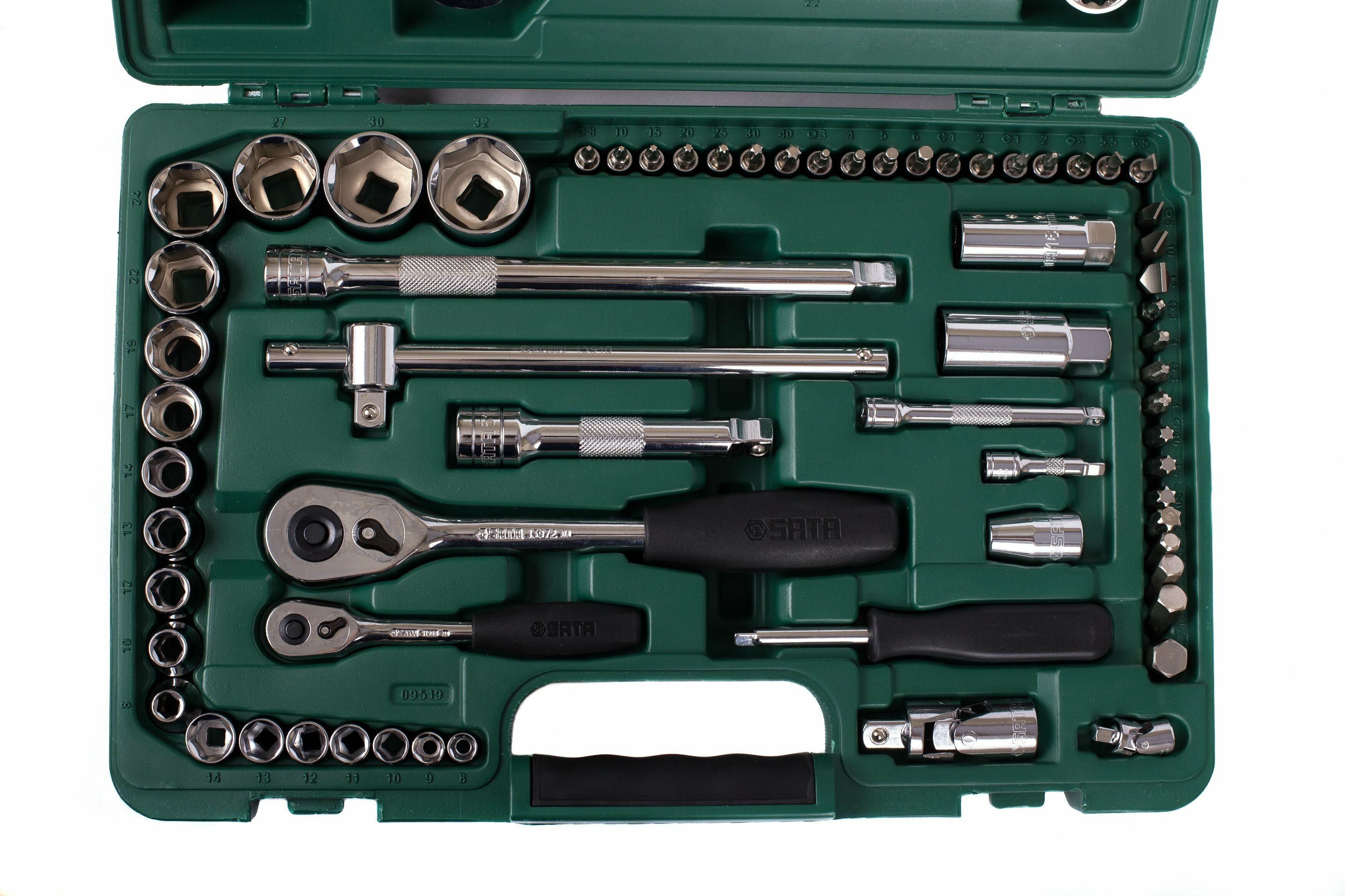 09519 Набор инструмента универсальный SATA 1/4" и 1/2"DR, торцовые головки 8-32мм, комби ключи 09519