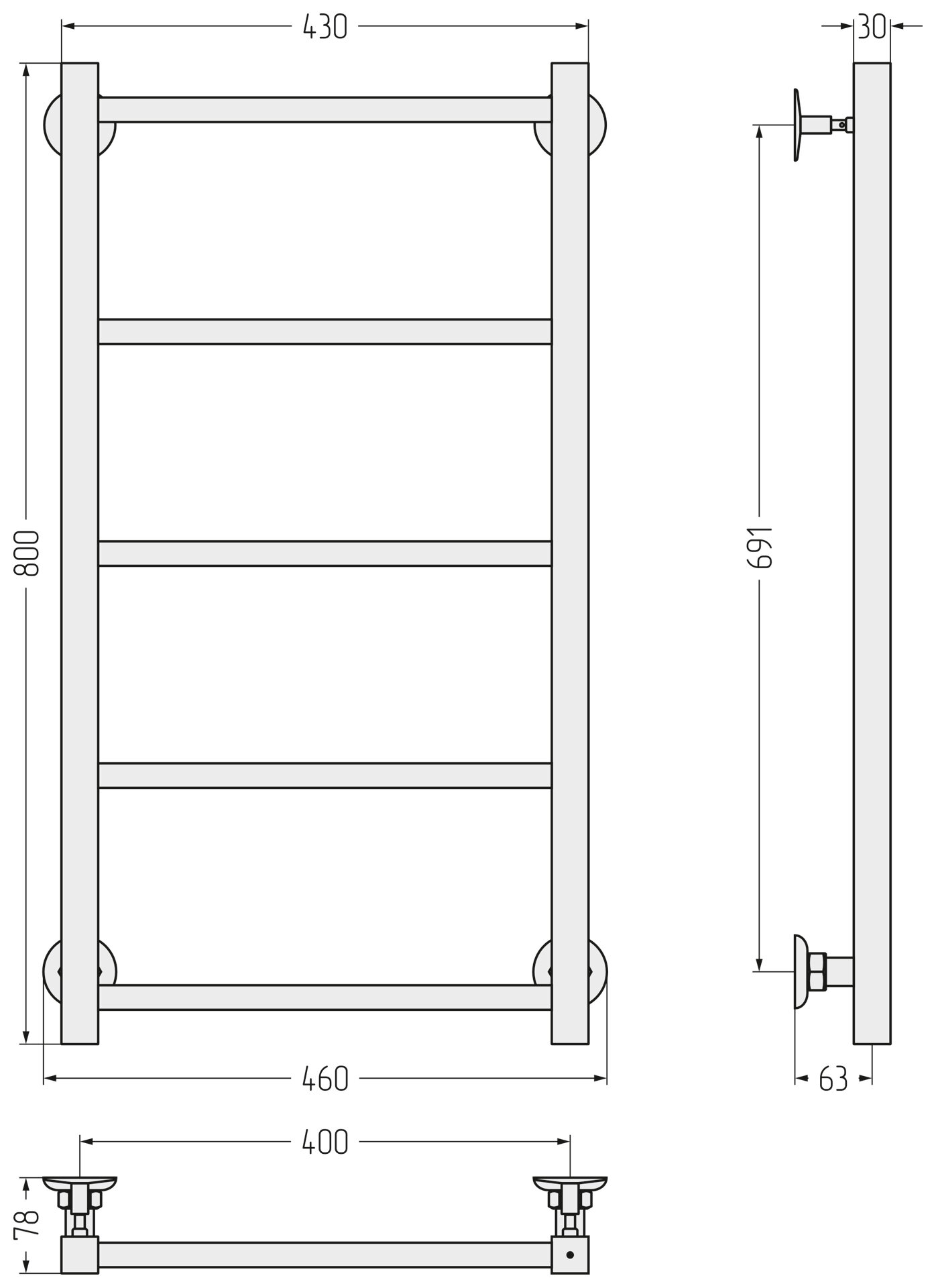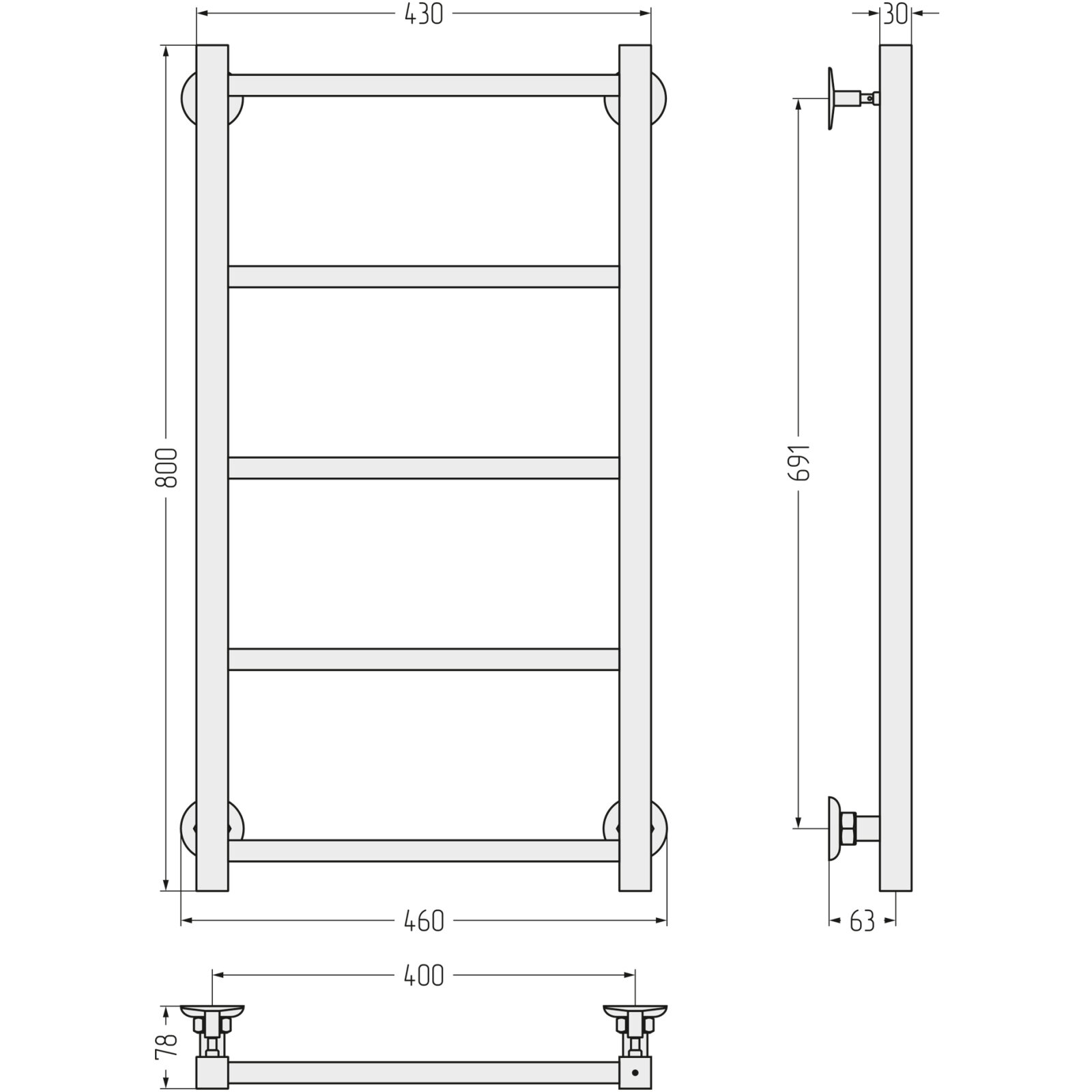 Полотенцесушитель водяной Стилье Версия-КН 800х400 (5) П 20х20 Без покрытия