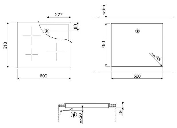 | Размеры конфорок | 420х210 мм, 180х280мм, 420х210 мм |
