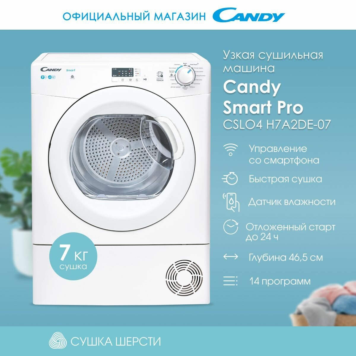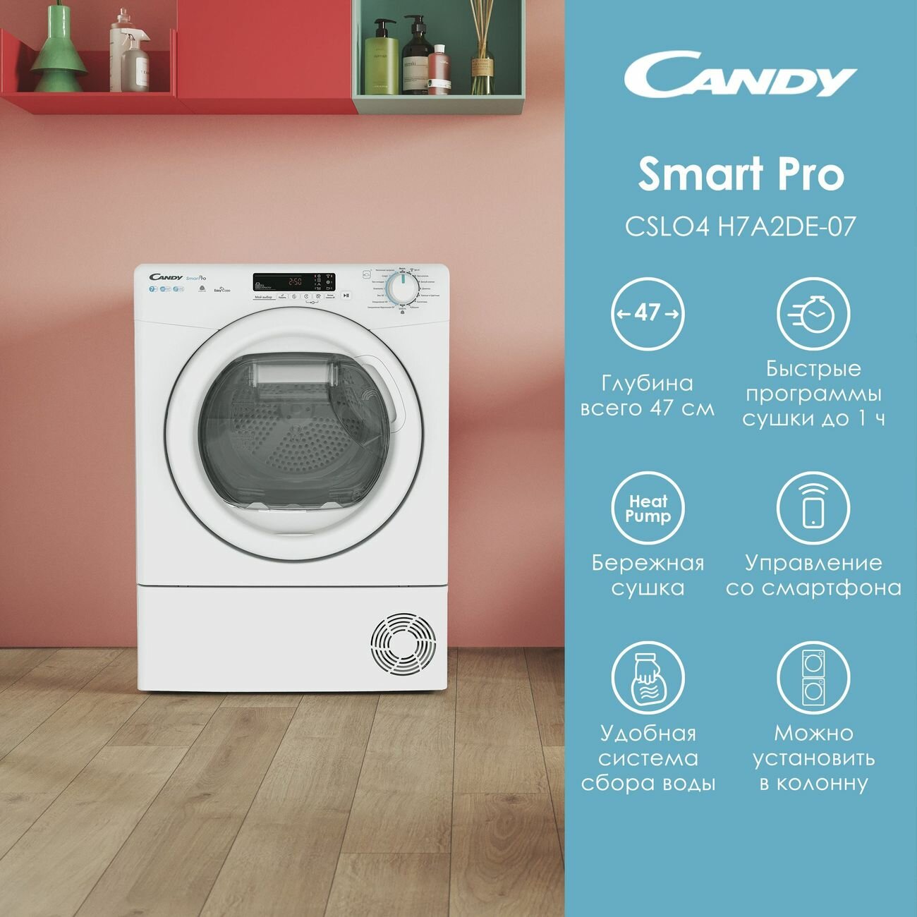 Узкая сушильная машина Candy CSLO4 H7A2TBE-07, загрузка 7 кг, тепловой насос HEAT PUMP, управление с телефона