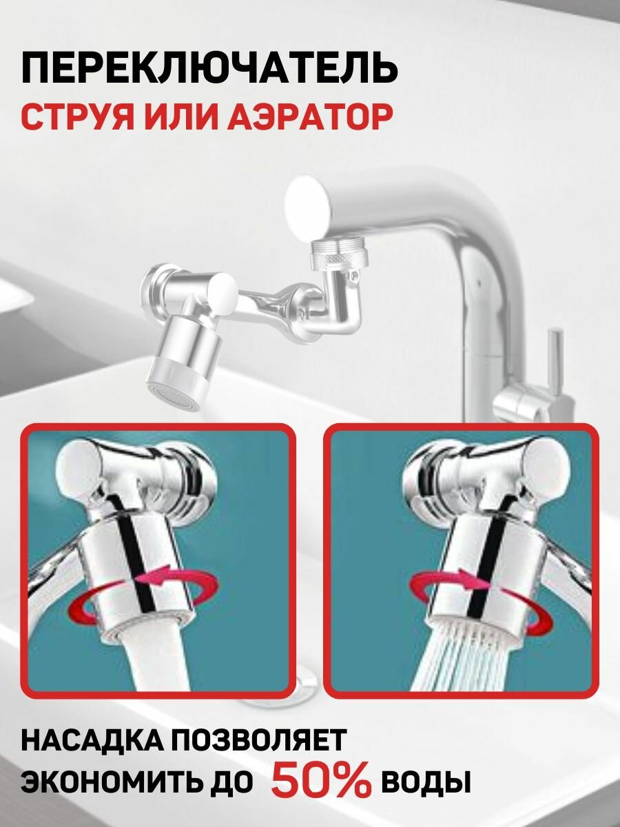 Насадка на смеситель, вращающаяся на 1080 градусов / Распылитель для крана, 2 режима струи интересное:
