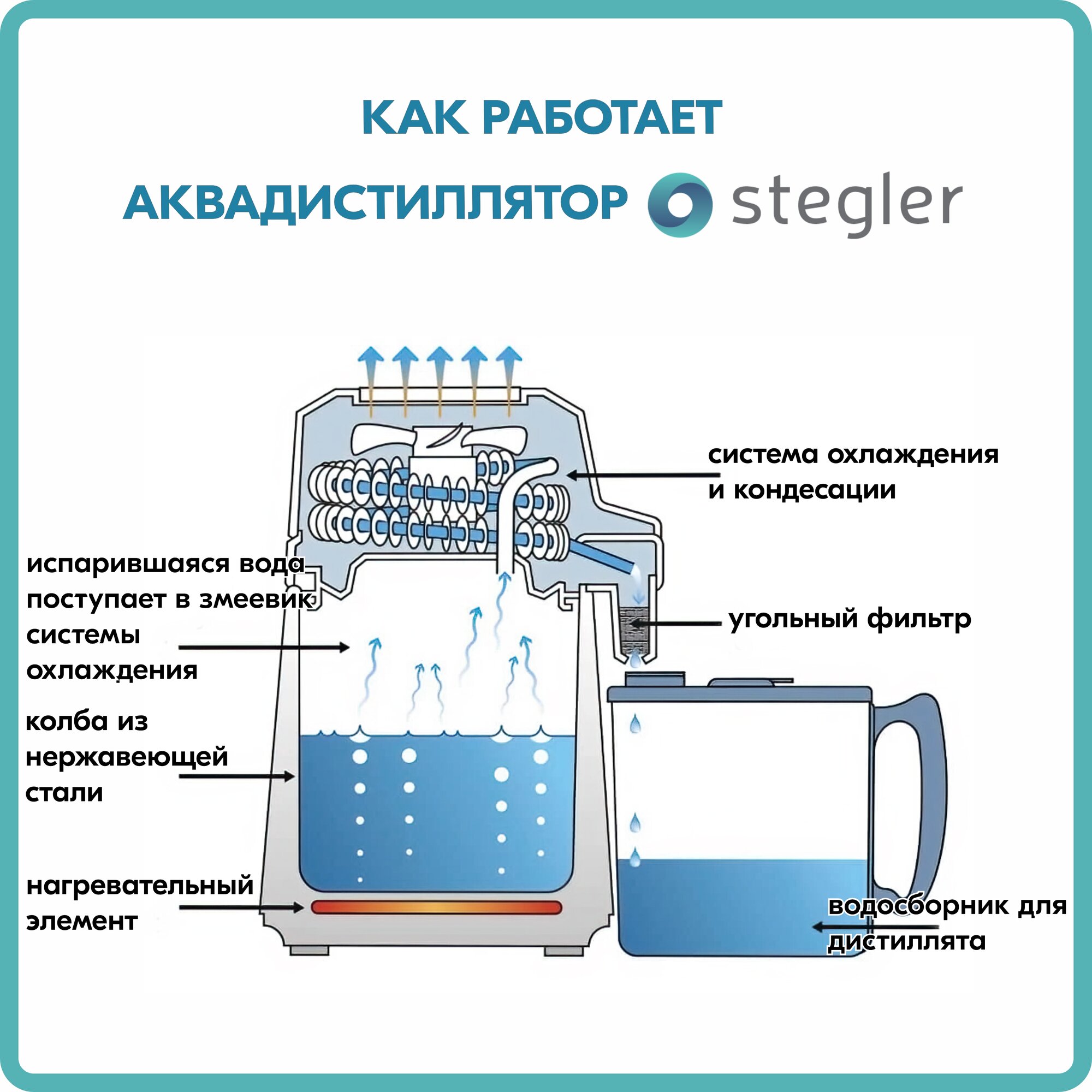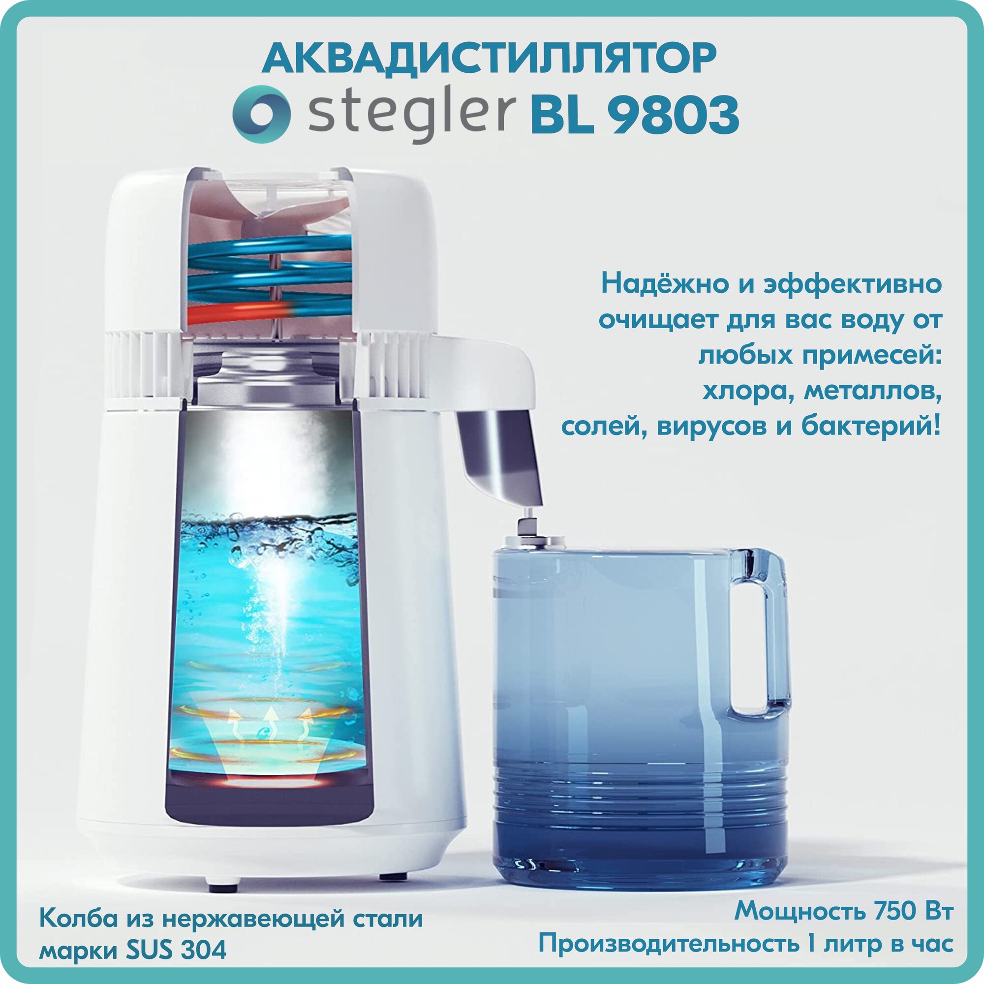 Аквадистиллятор бытовой Stegler BL- 9803 (пластиковый корпус) интересное: