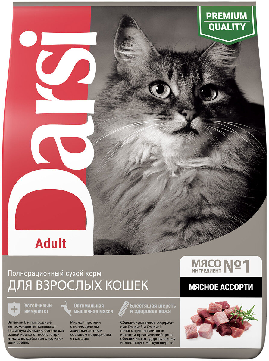 Купить Darsi Adult сухой корм для кошек Мясное ассорти, 0,3кг, 1шт