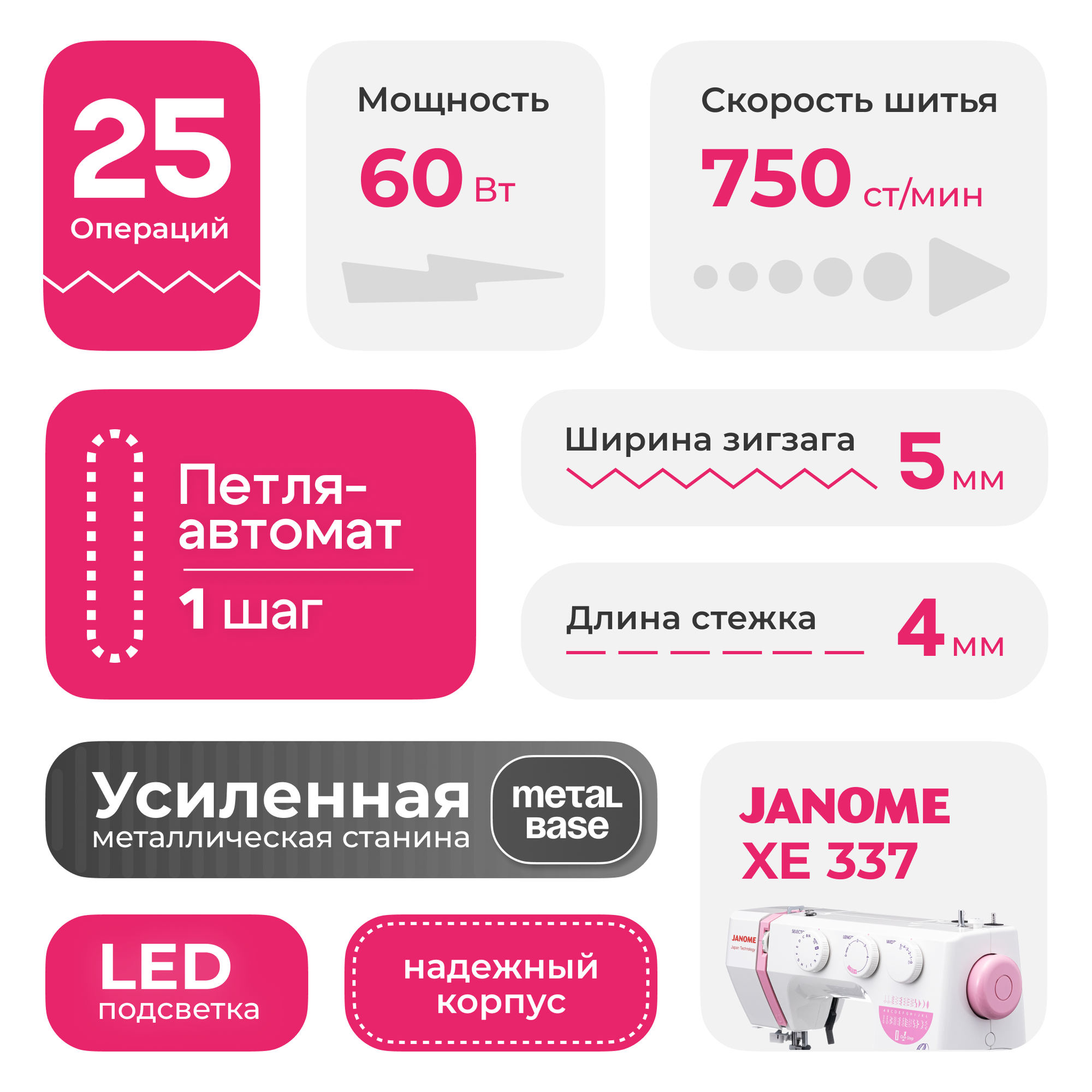 Швейная машина Janome XE 337 интересное: