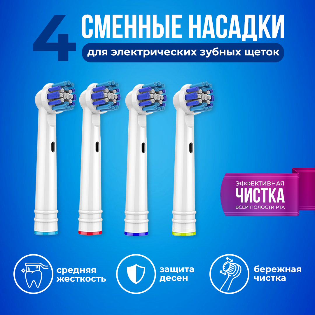 Купить Насадки для электрических зубных щеток 4 штуки / Совместимые с Oral-B Braun / Насадки oral b на зубные щетки 4 штуки