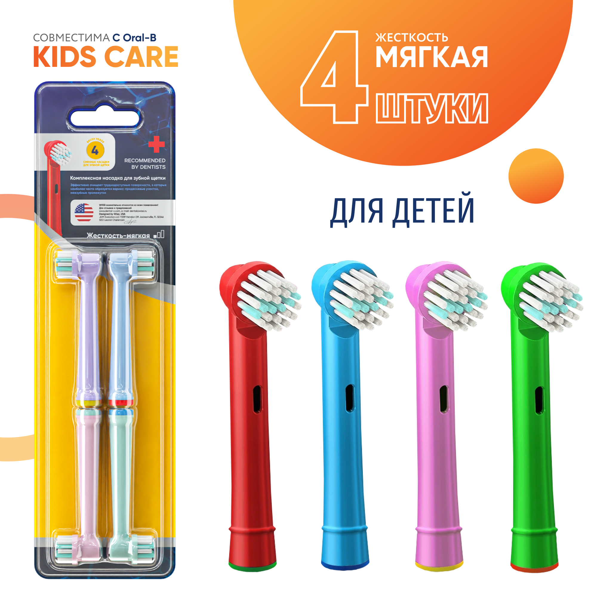 Купить Насадки KIDS CARE для детской электрической зубной щетки, совместимы с Oral-B Braun 4 шт