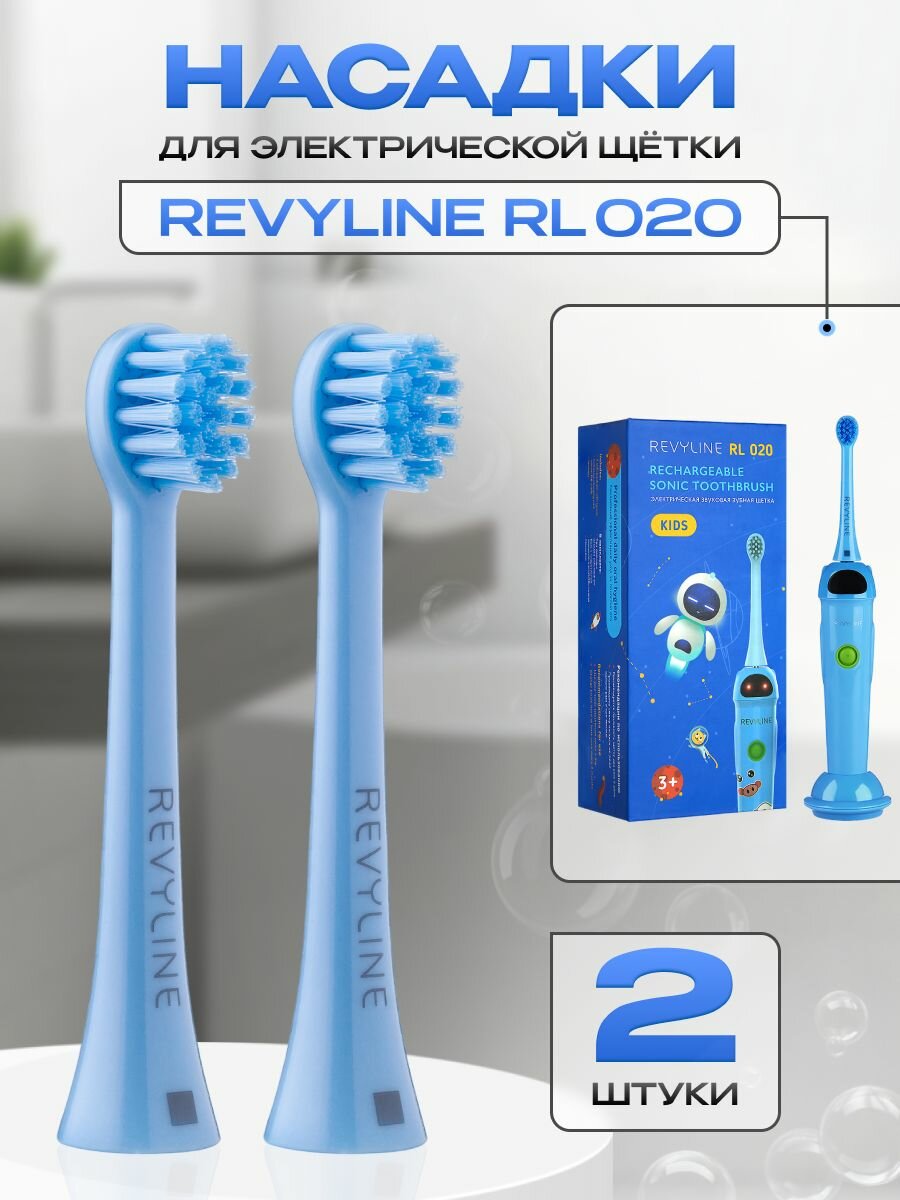 Насадки Revyline RL 020 синий цвет, 2 шт, к детской зубной электрической щетке (Ревилайн)