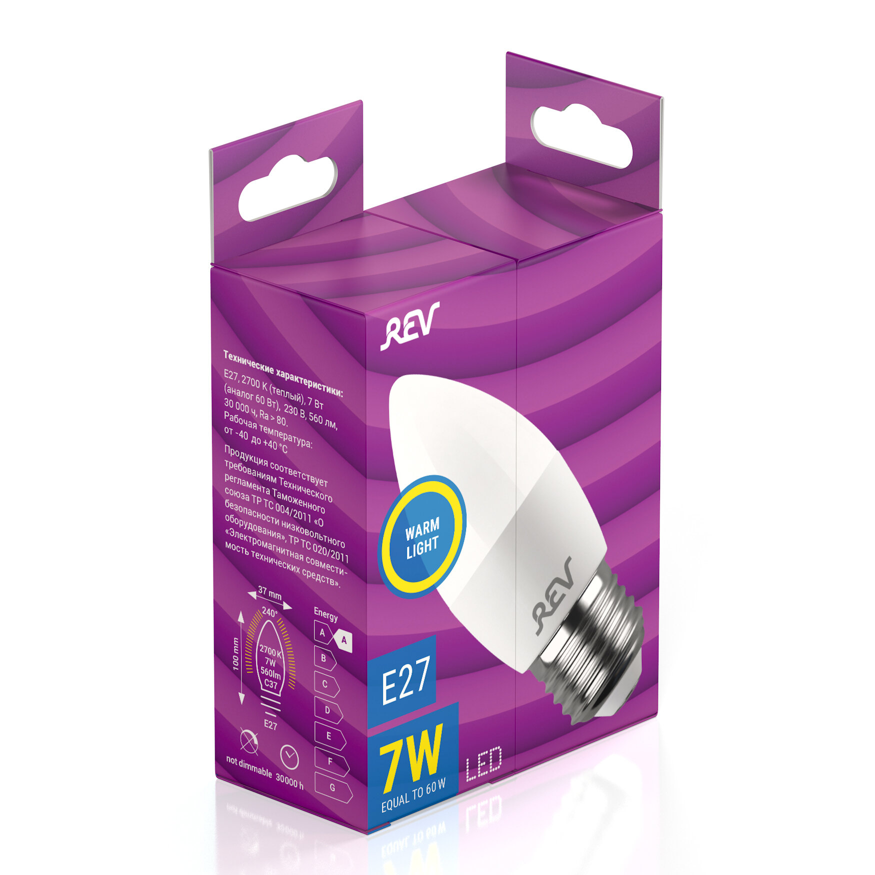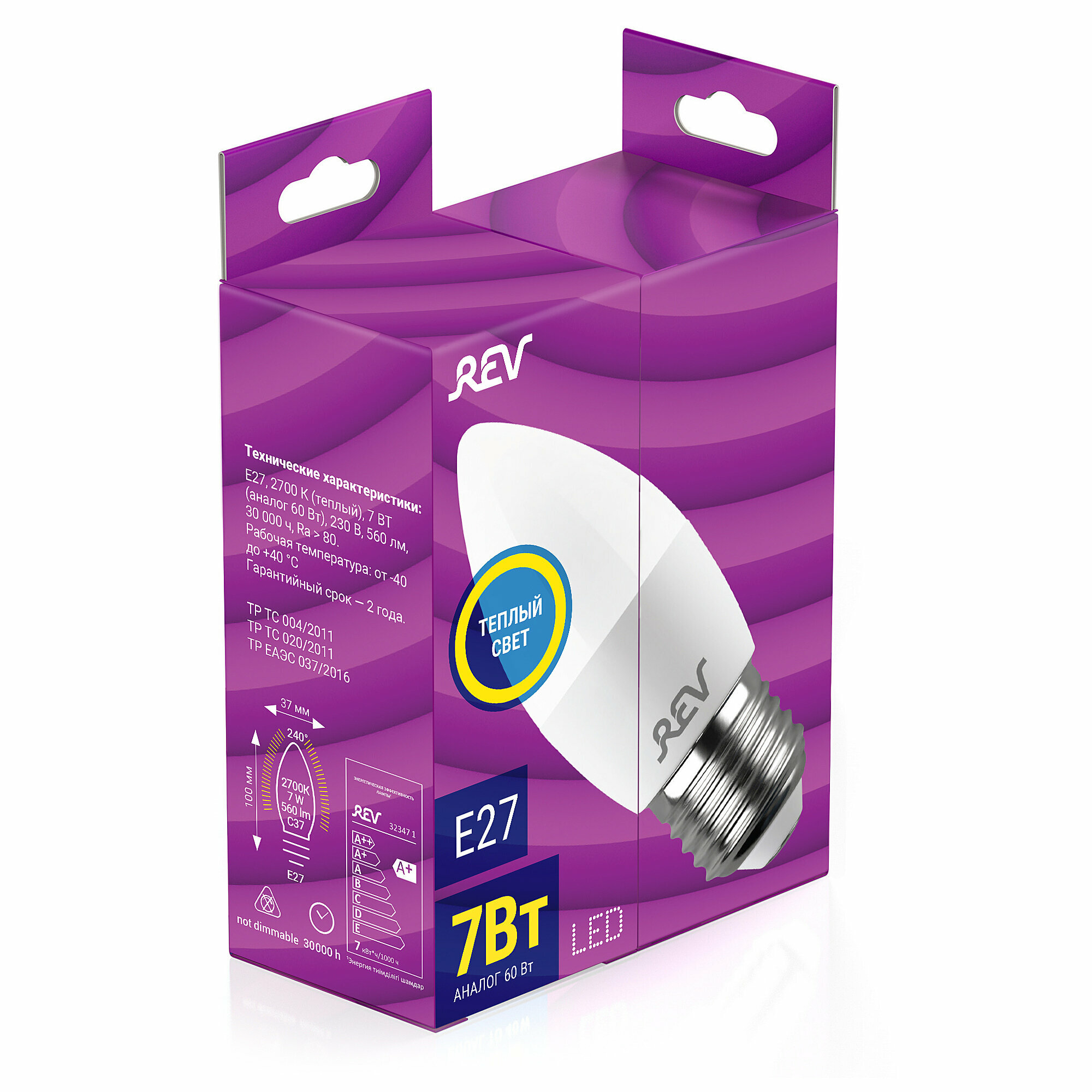 Лампа светодиодная C37 Е27 7W 2700K теплый свет свеча REV 32347 1