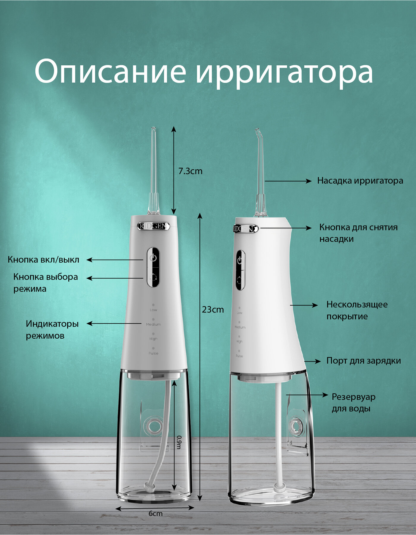 Есть один нюанс: включение ирригатора через продолжительное нажатие кнопки включения