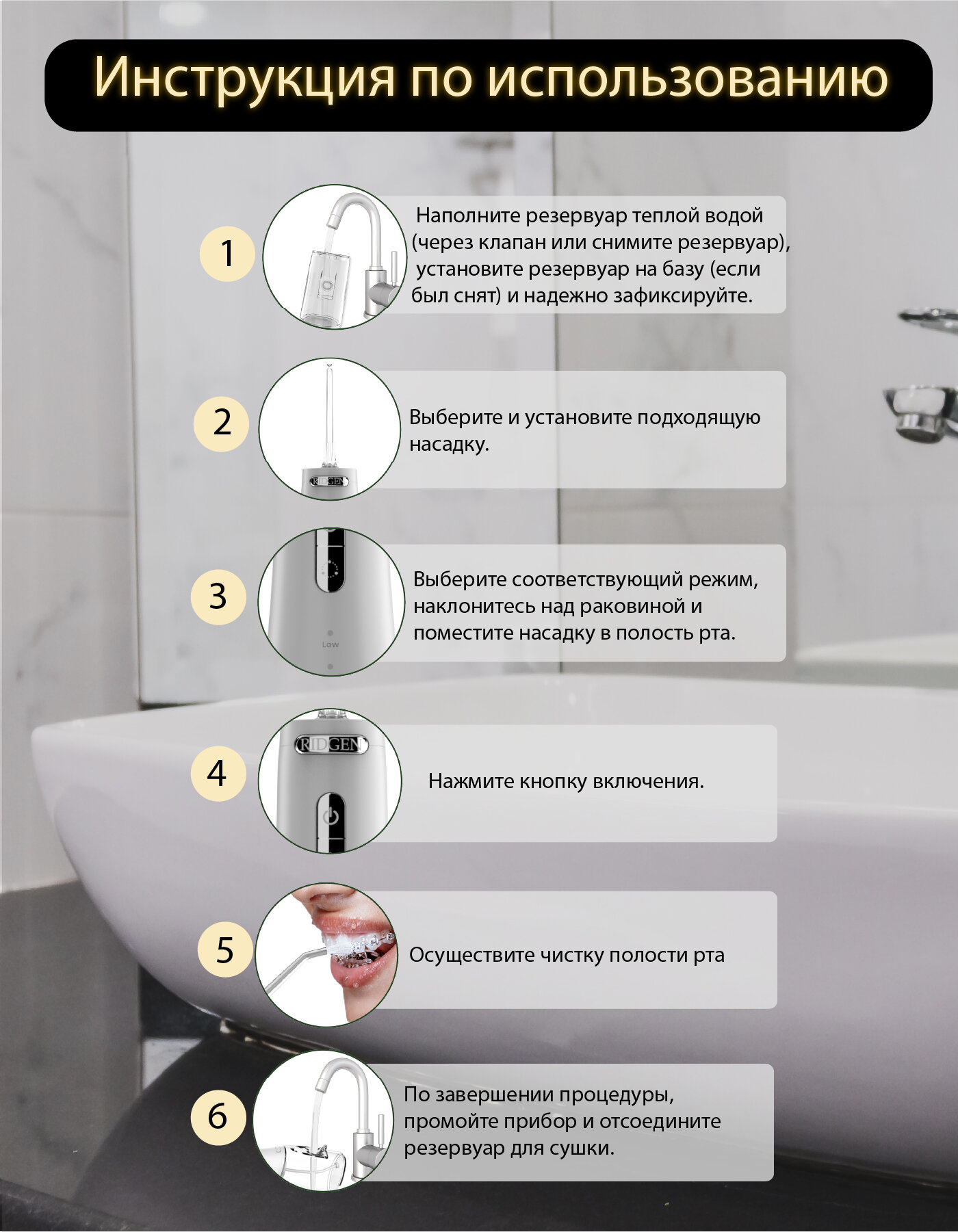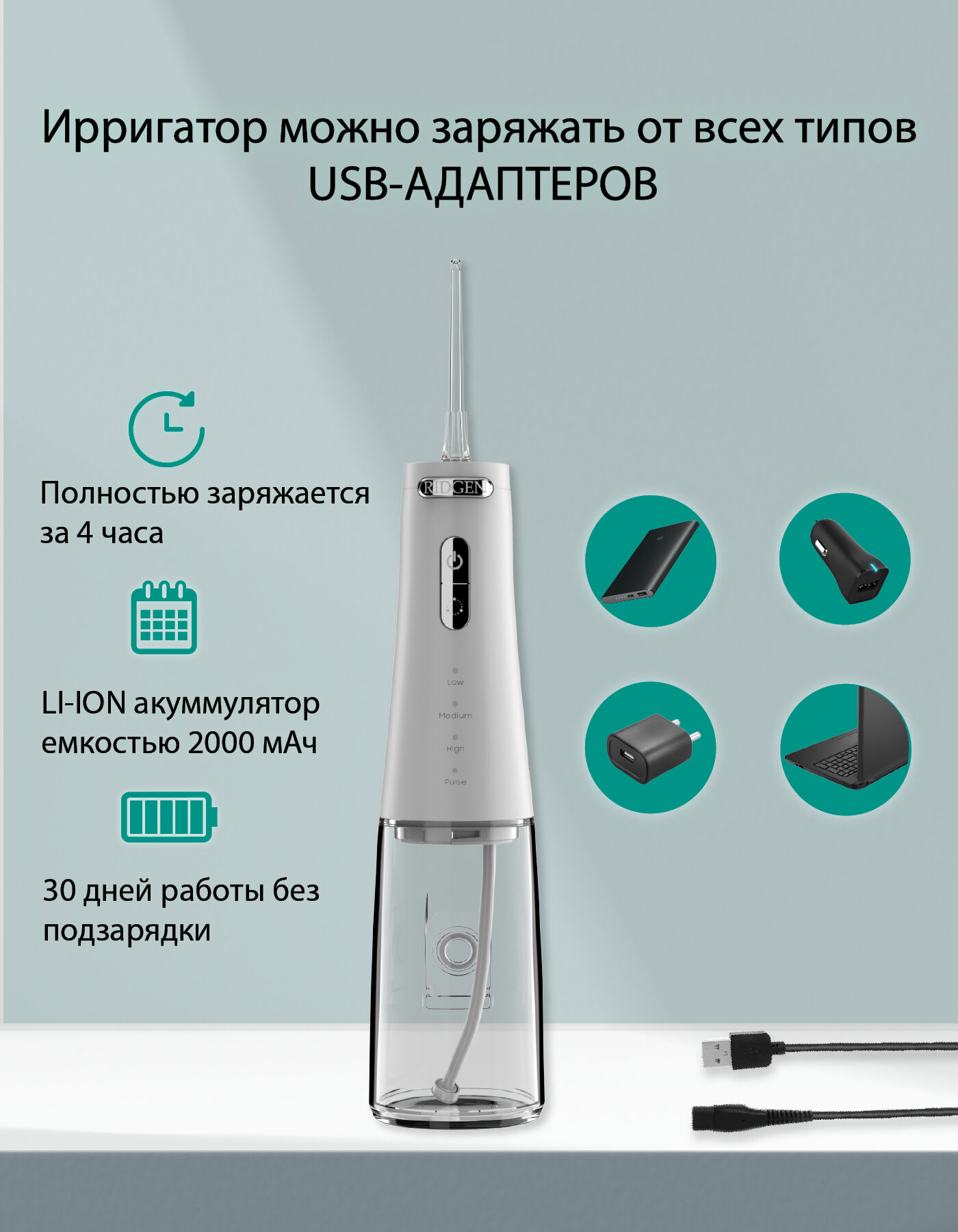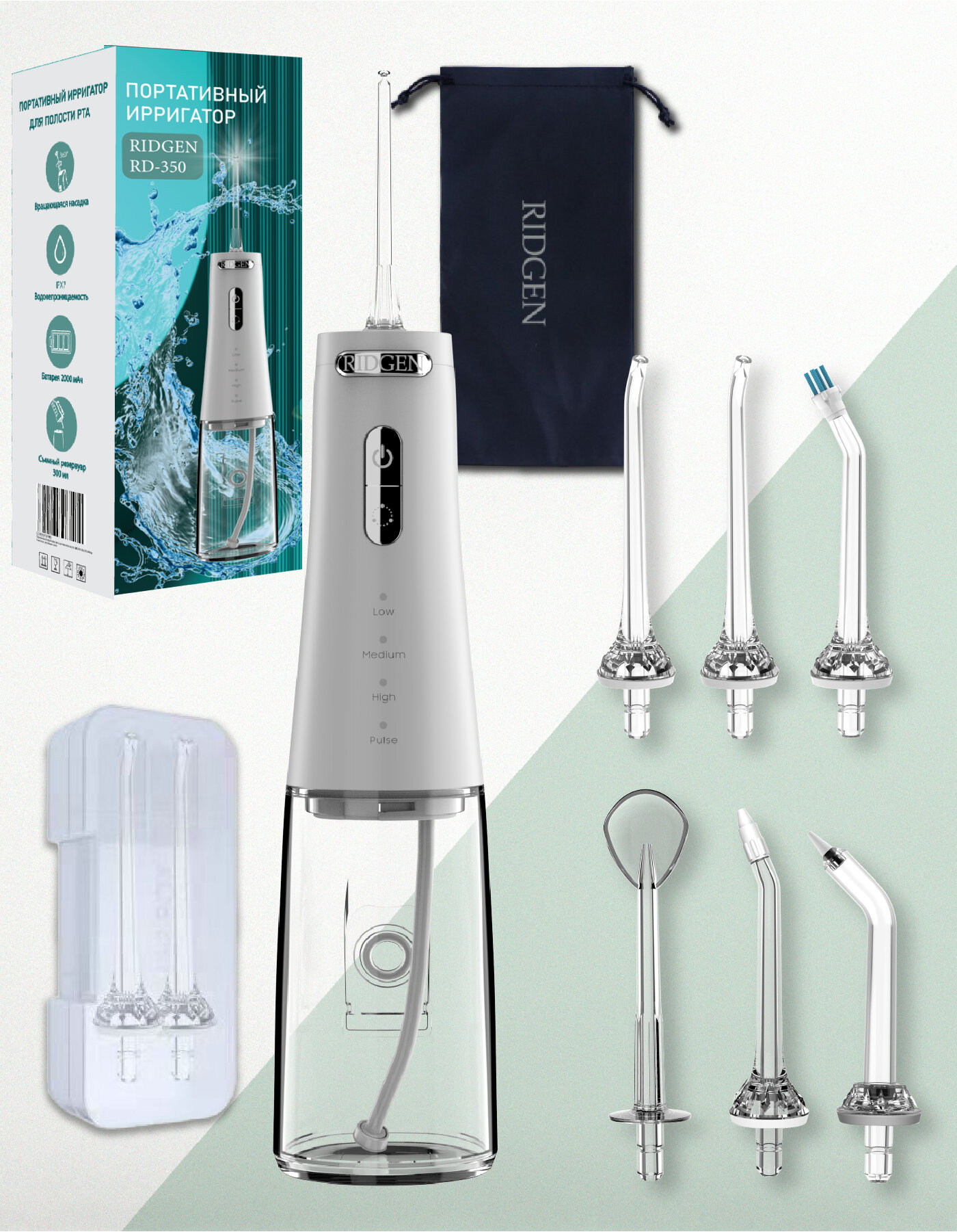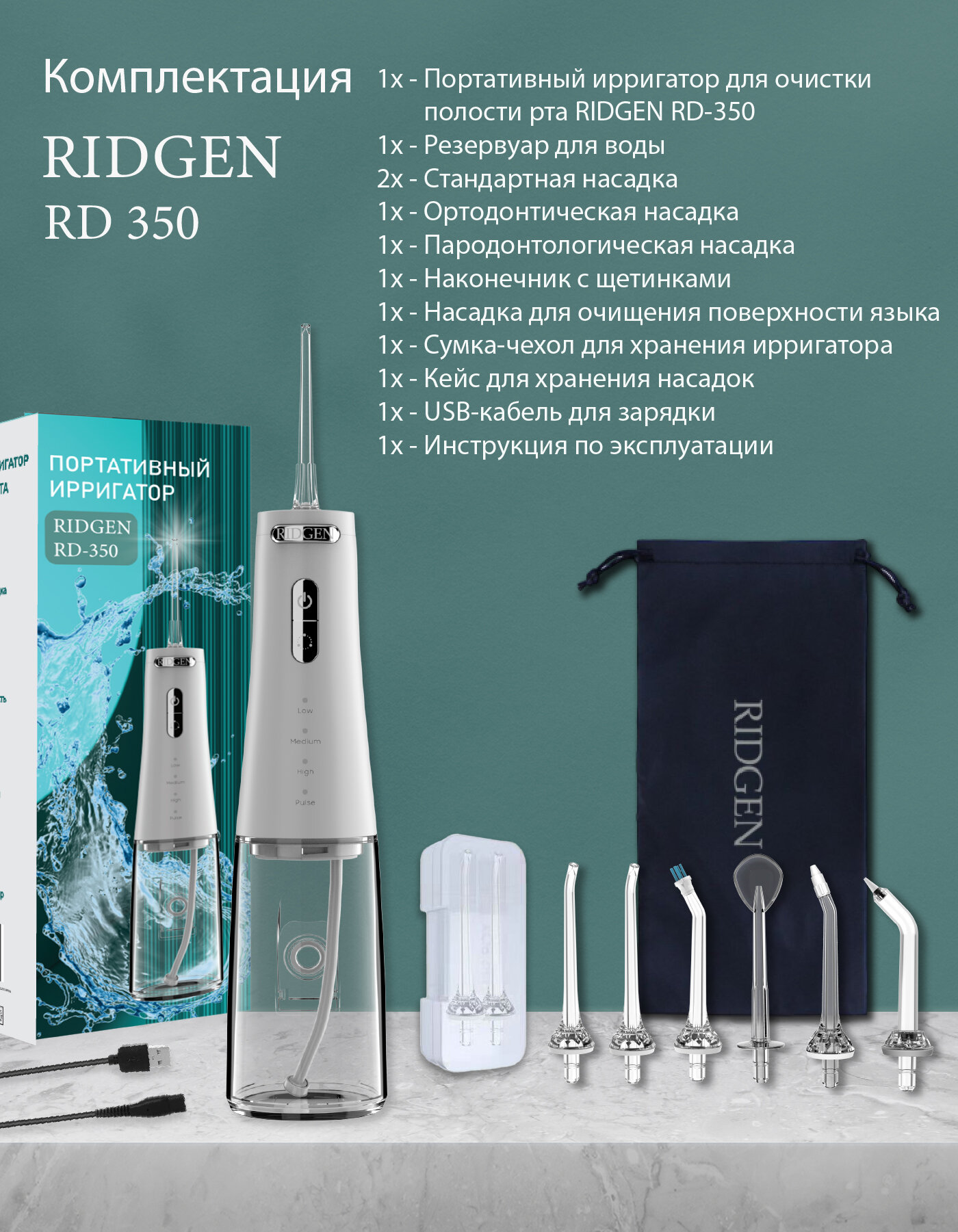 Ниже Вы можете прочитать отзывы на Портативный ирригатор для очистки полости рта RIDGEN RD-350/White, 6 насадок, дорожный чехол, ознакомится с подробными характеристиками, посмотреть интересные обзоры и фотографии на Портативный ирригатор для очистки полости рта RIDGEN RD-350/White, 6 насадок, дорожный чехол.
