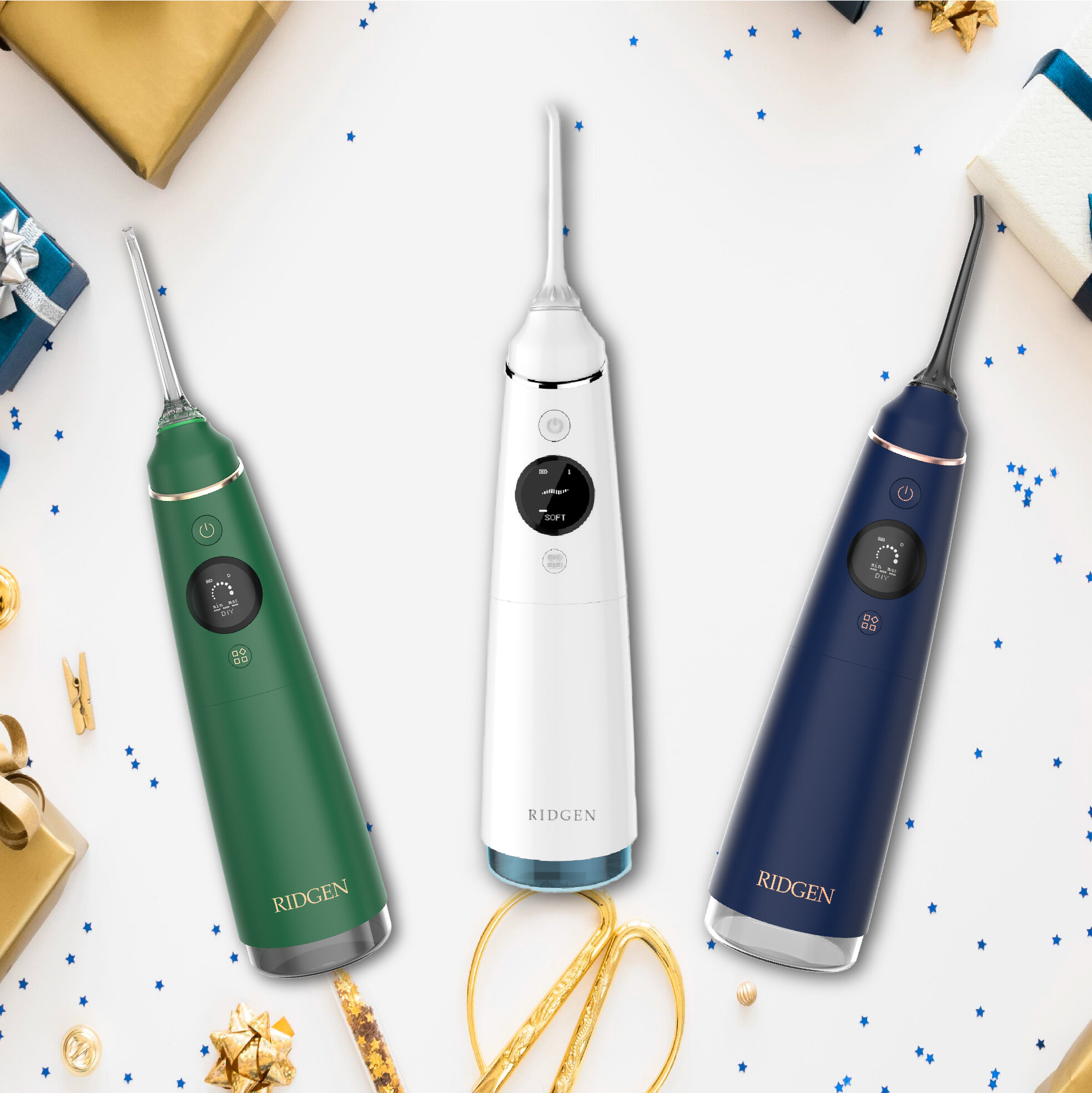 Портативный ирригатор для очистки полости рта RIDGEN RD-260/Blue plus, 6 насадок, кейс для насадок