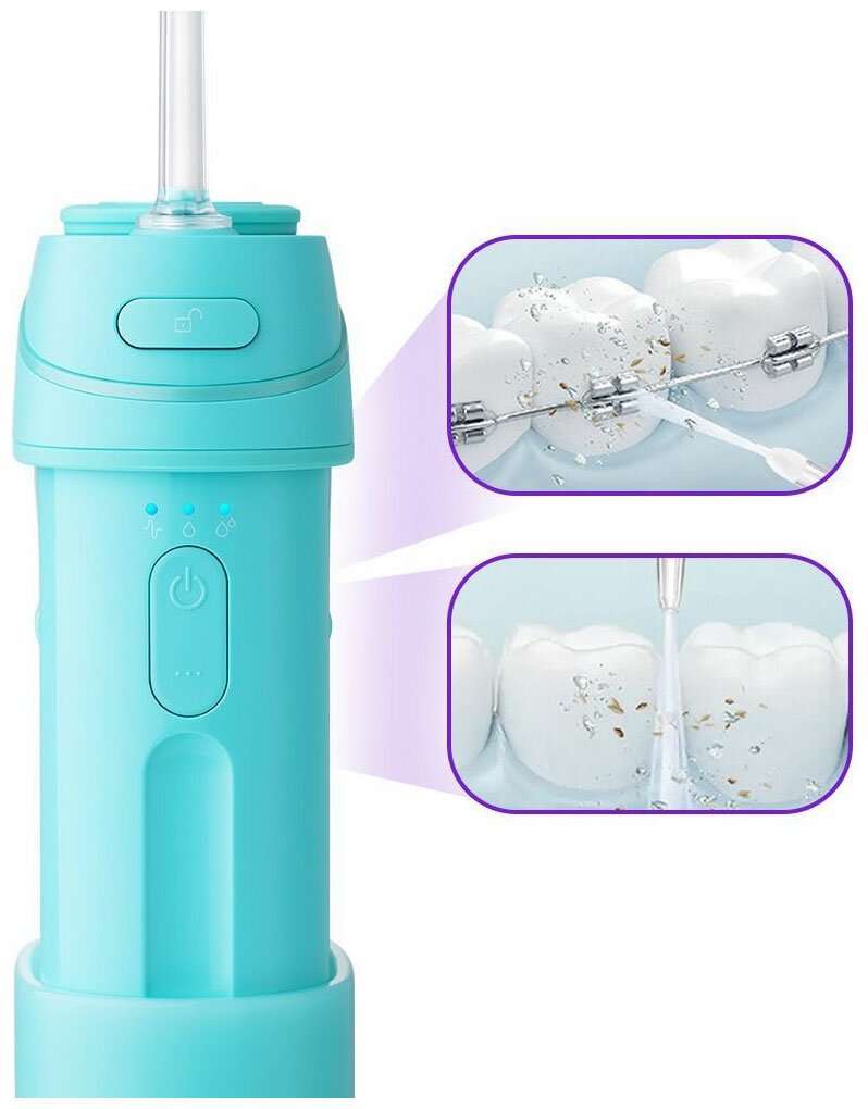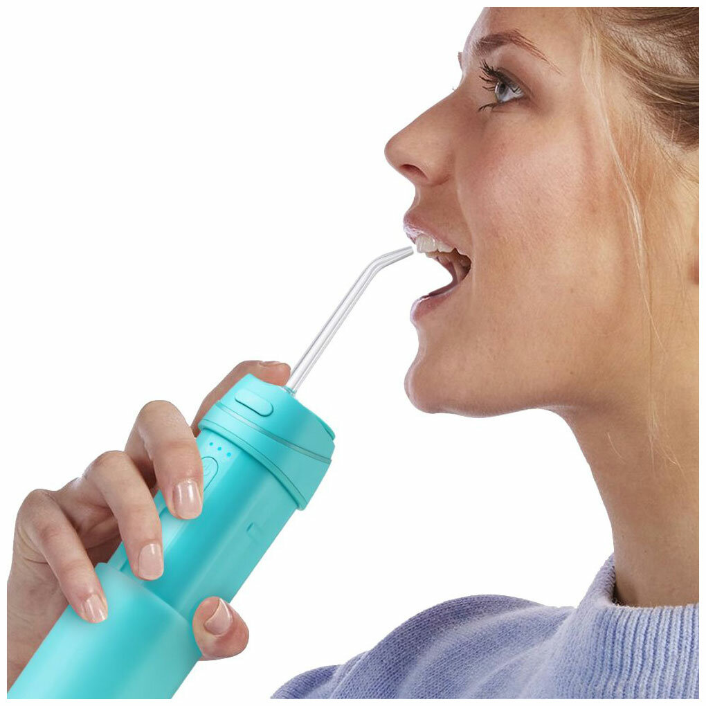 Портативный ирригатор для полости рта, 4 насадки, резервуар 200 мл, бирюзовый/оранжевый