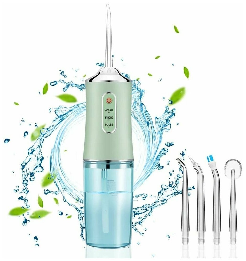 Портативный ирригатор для полости рта и чистки зубов, 3 режима, 4 насадки, емкость 230 мл, зеленый интересное:
