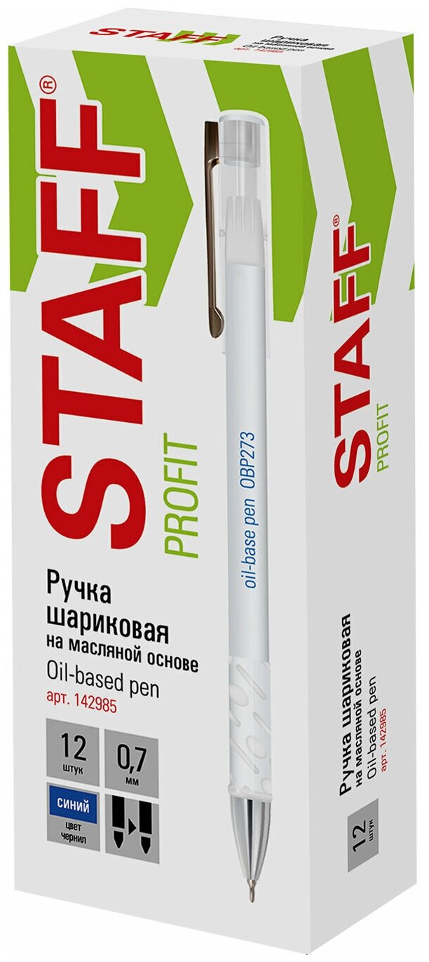 Ручка шариковая масляная с грипом STAFF "Profit Chrome-X", синяя, корпус белый, хромированные детали, узел 0,7 мм, линия 0,35 мм, 142985 (24 шт.)