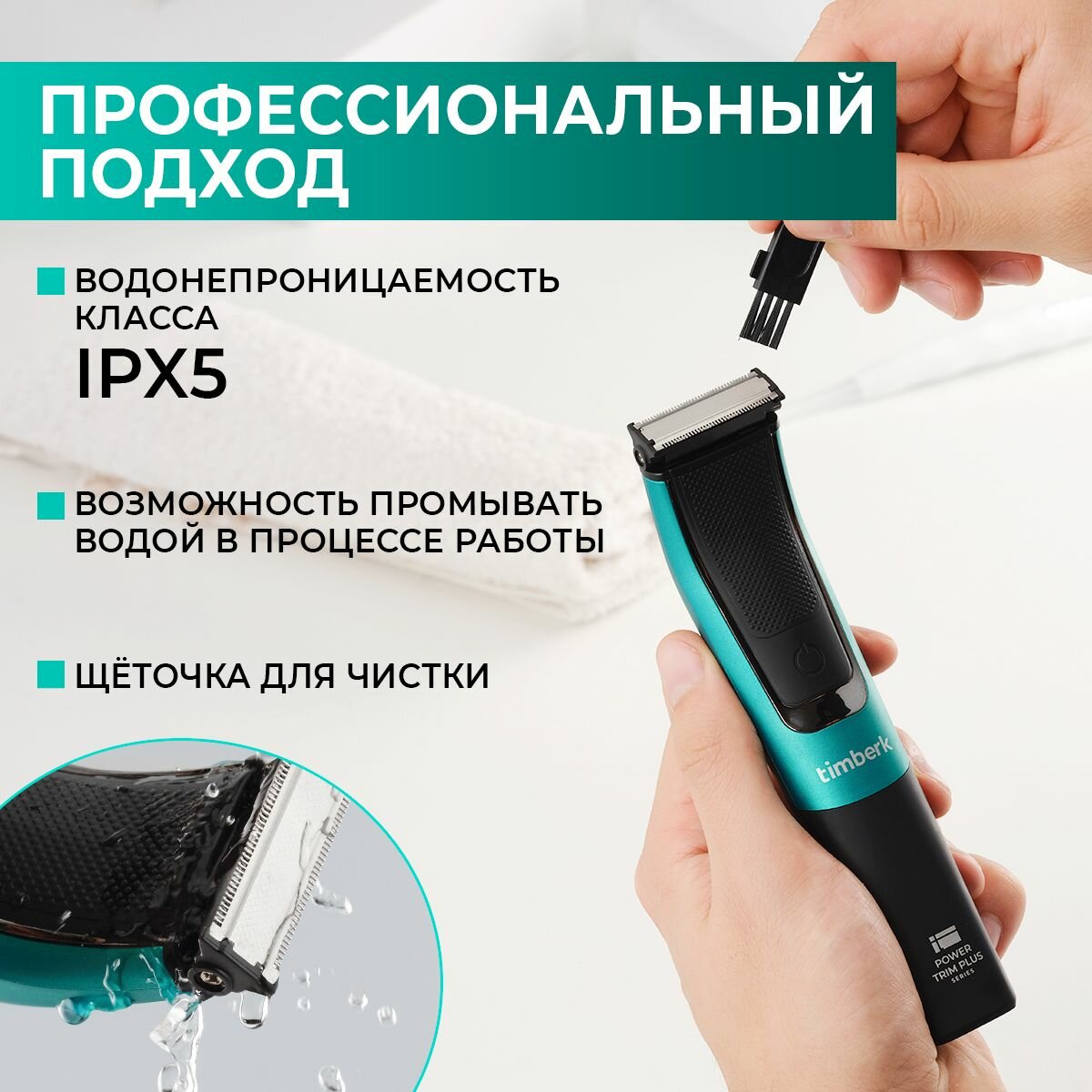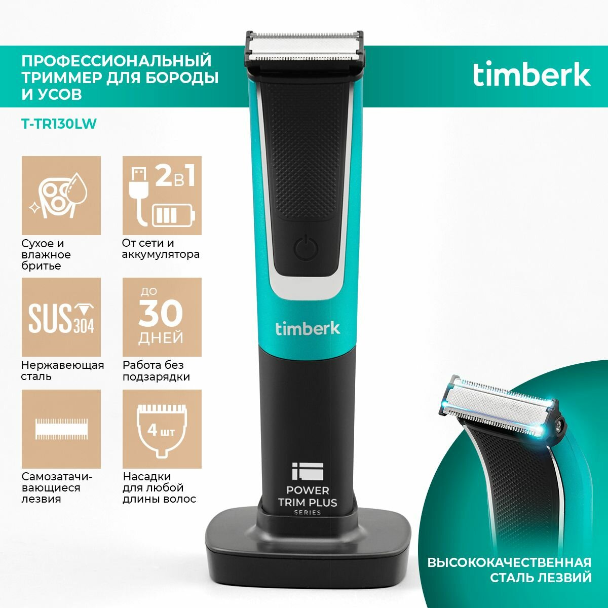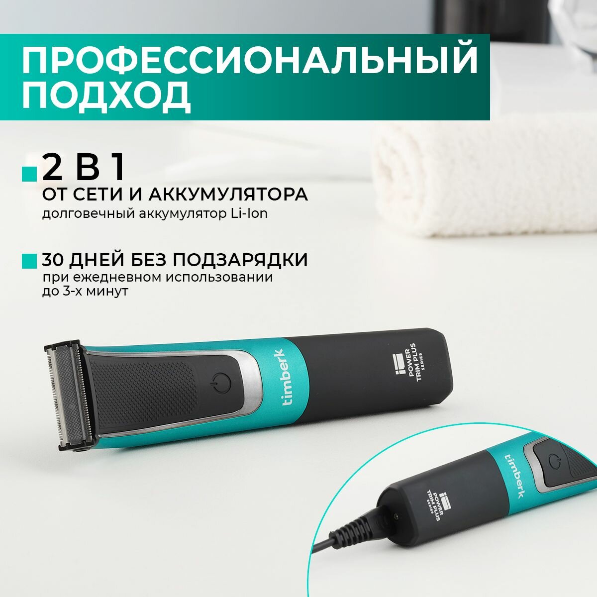 Триммер Timberk T-TR130LW, 4 насадки, сухое и влажное бритье, 30 дней без подзарядки