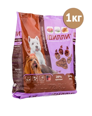 Корм сухой Дилли полнорационный для взрослых собак мелких пород, 1кг