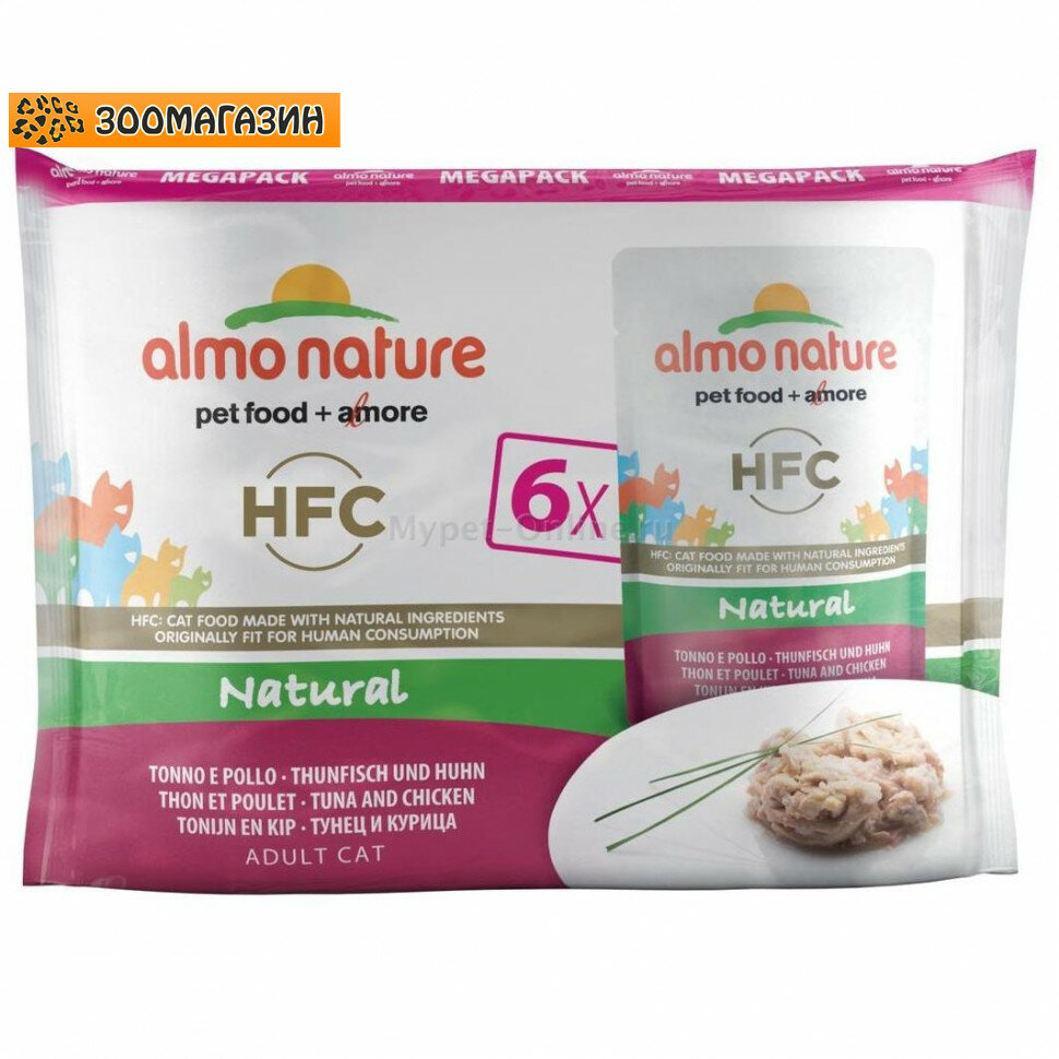 Almo Nature консервы Набор 6 шт.по 55г паучи для Кошек с Тунцом и Курицей (HFC - Mega Pack - Natural - Tuna and Chicken ) 5855 | Classic Adult Cat Tuna Chicken, 0,33 кг