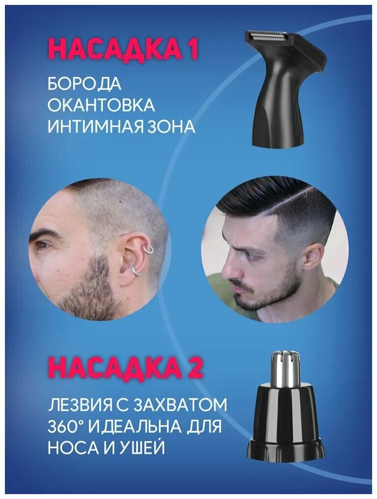 отличный триммер, хорошо стрижет волосы в ушах и носу + есть насадка для выравнивания бороды