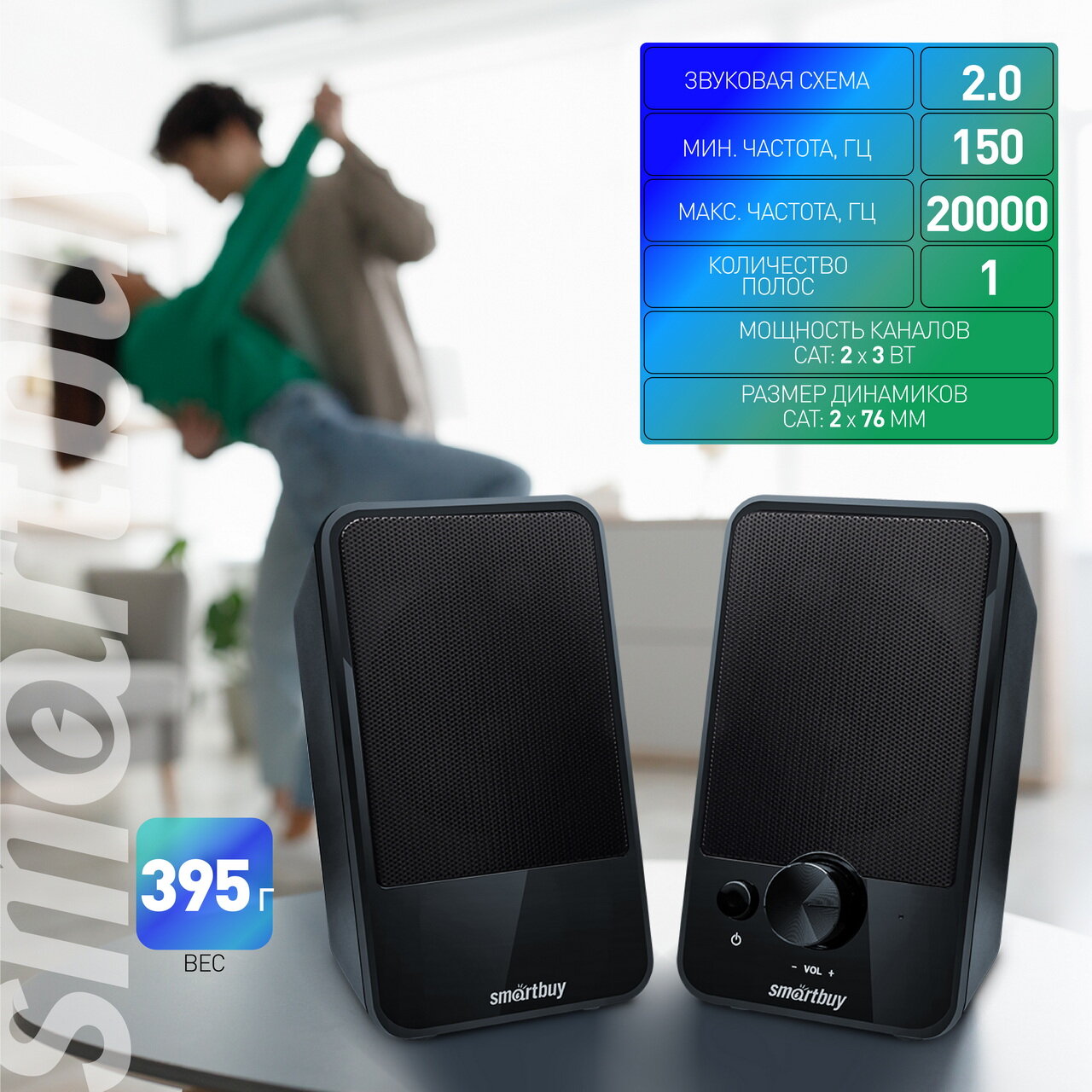 Компьютерные колонки 2.0 SmartBuy W30, 6 Вт, USB, чёрные