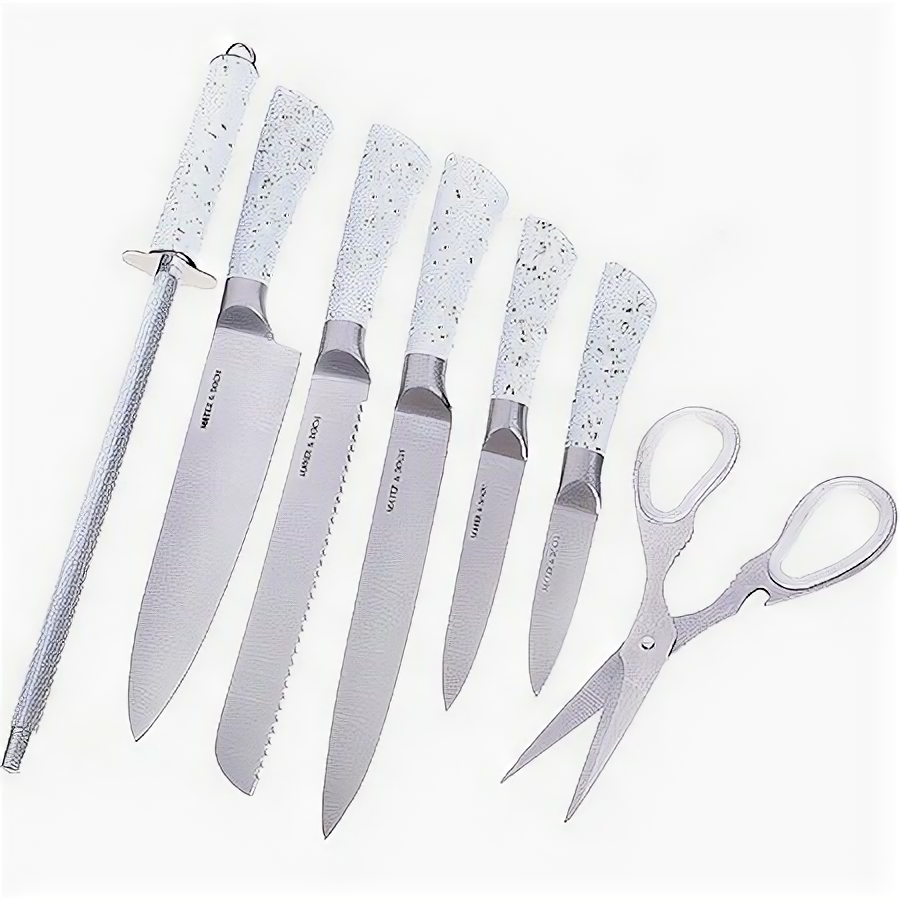 | Типы ножей в наборе | нож для овощей, нож для хлеба, разделочный нож, универсальный нож, шеф-нож |