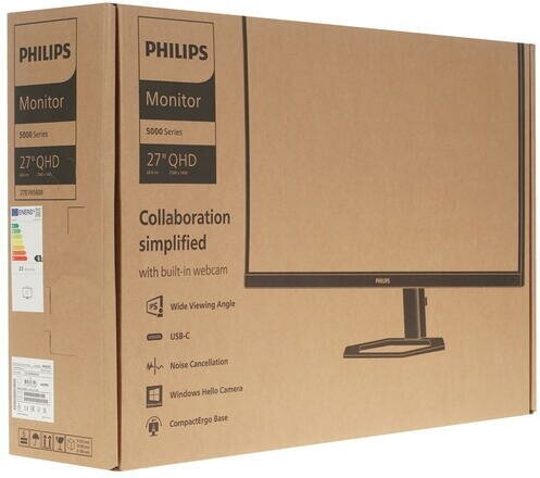 Монитор 27" Philips 27E1N5600HE IPS, 2560x1440 USB Type-C, вход DisplayPort, вход HDMI чёрный black