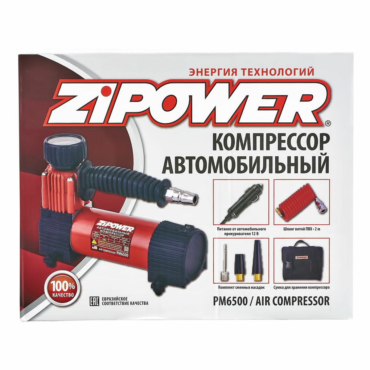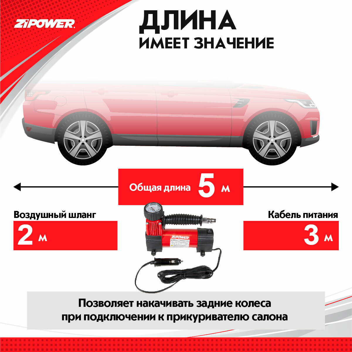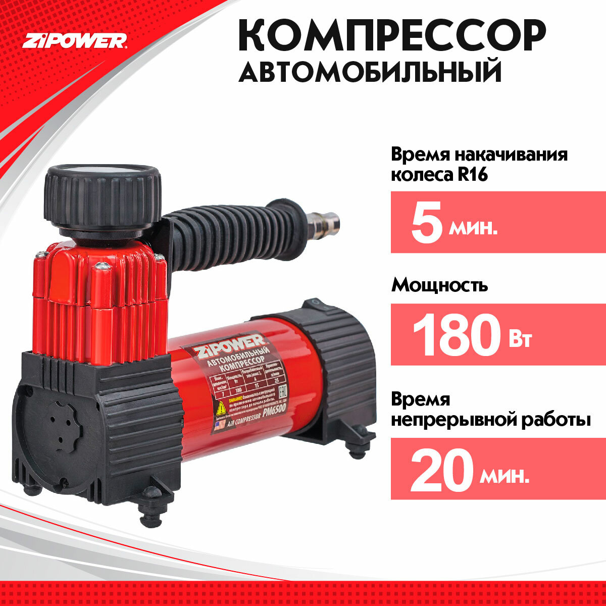 Компрессор автомобильный 12В, 15А,180 Вт, 25л/мин Zipower интересное: