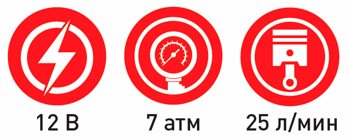 Компрессор автомобильный 12В, 15А,180 Вт, 25л/мин, 7 кгс/кв. см