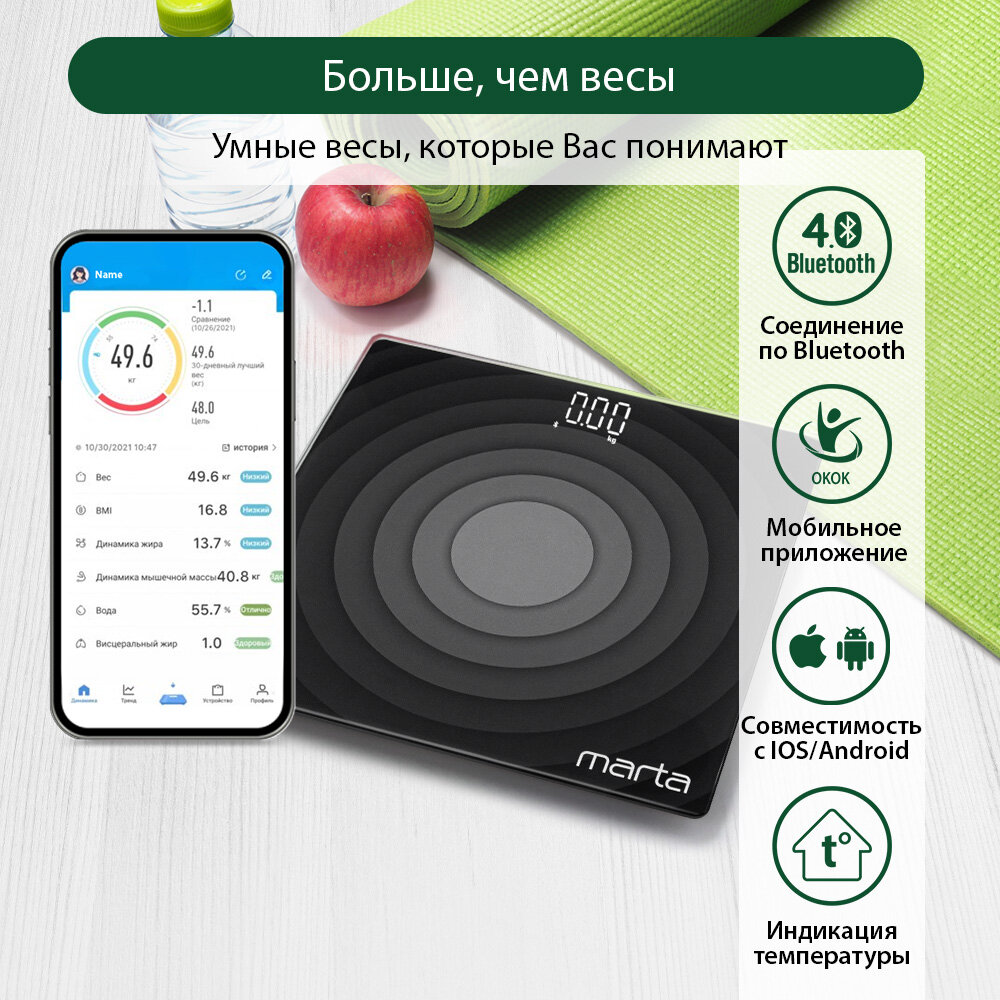 Весы напольные умные MARTA MT-SC3603 черный жемчуг
