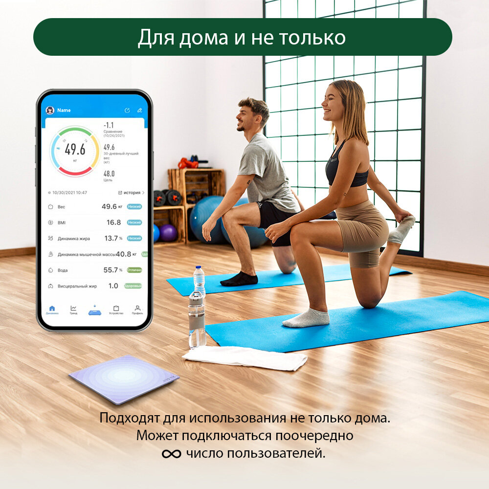 | Плюсы: | Вес показывают верно,приложение определяет мышечную,жировую массу. Цена отличная. |