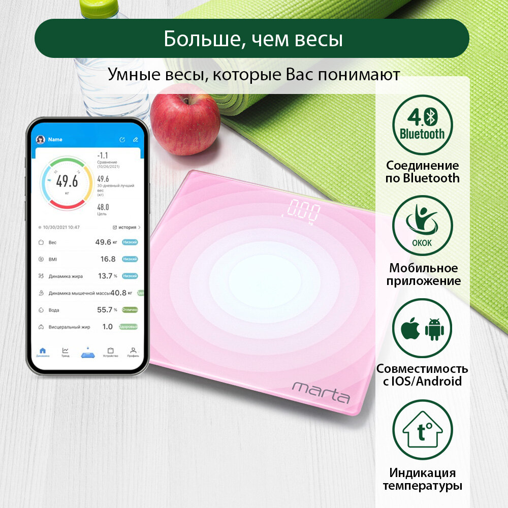 Весы напольные умные MARTA MT-SC3603 розовый