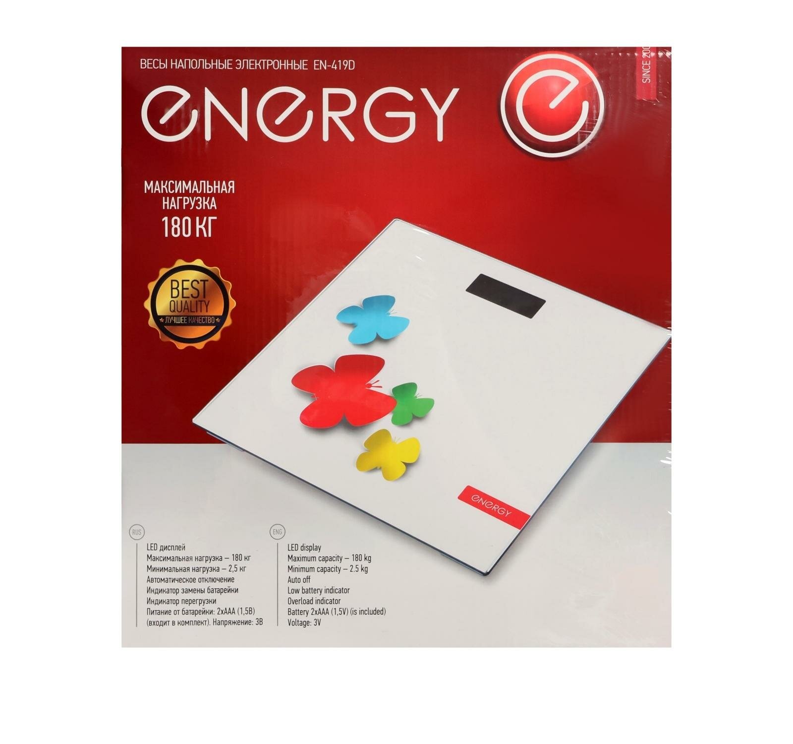 Energy Весы напольные ENERGY EN-419D, электронные, до 180 кг, стекло, "бабочки"