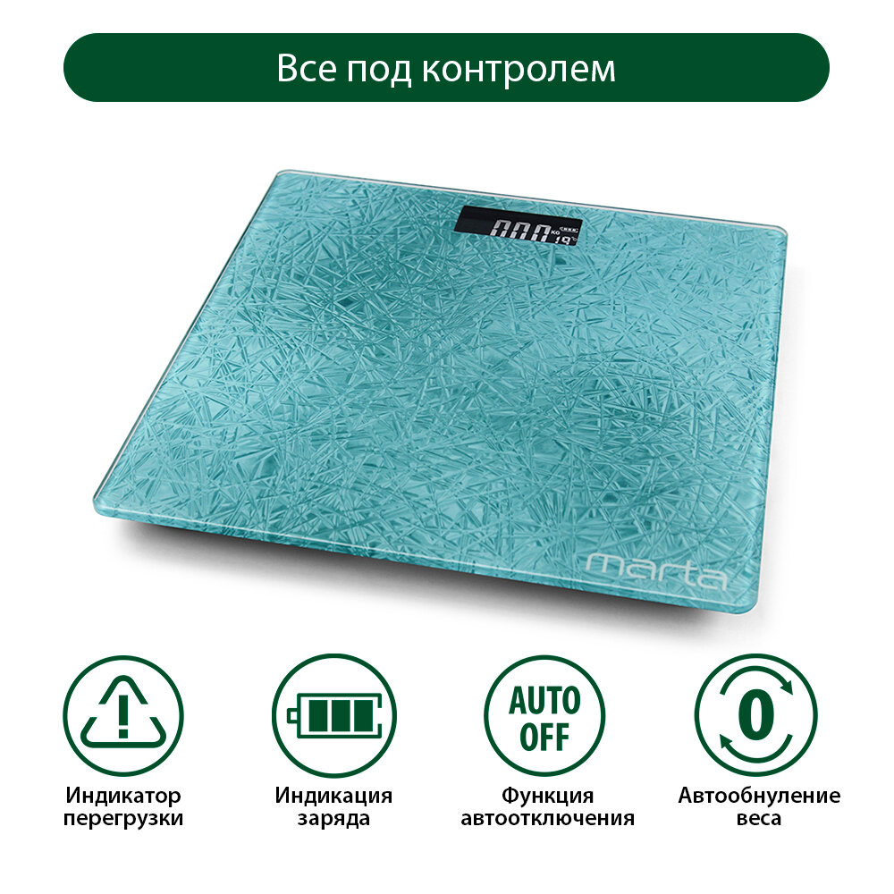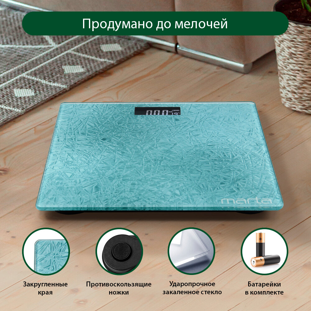 Купить MARTA MT-1679 голубая бирюза {new} весы напольные сенсор, встроенный термометр