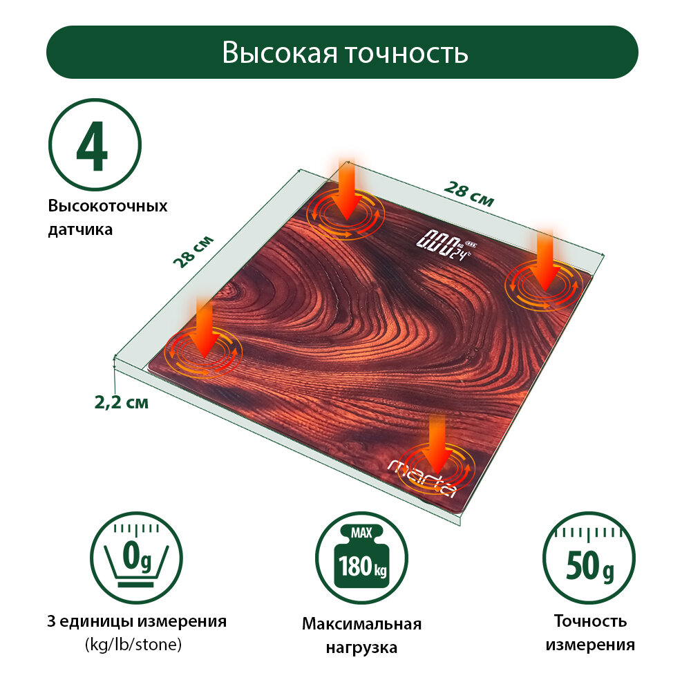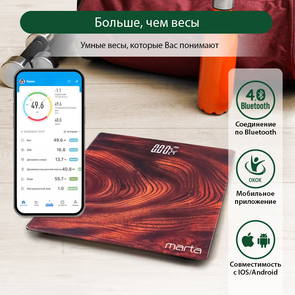 Умные диагностические весы MARTA MT-SC3604 красное дерево интересное: