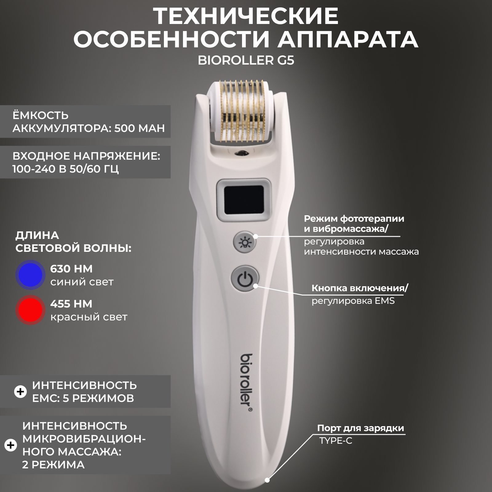 Mezonica Bio Roller G5 Аппарат для лица, тела и волос 2 в 1 / Мезороллер с 2 насадками 540 игл 0.5 мм / мезотерапия и EMS микротоки интересное: