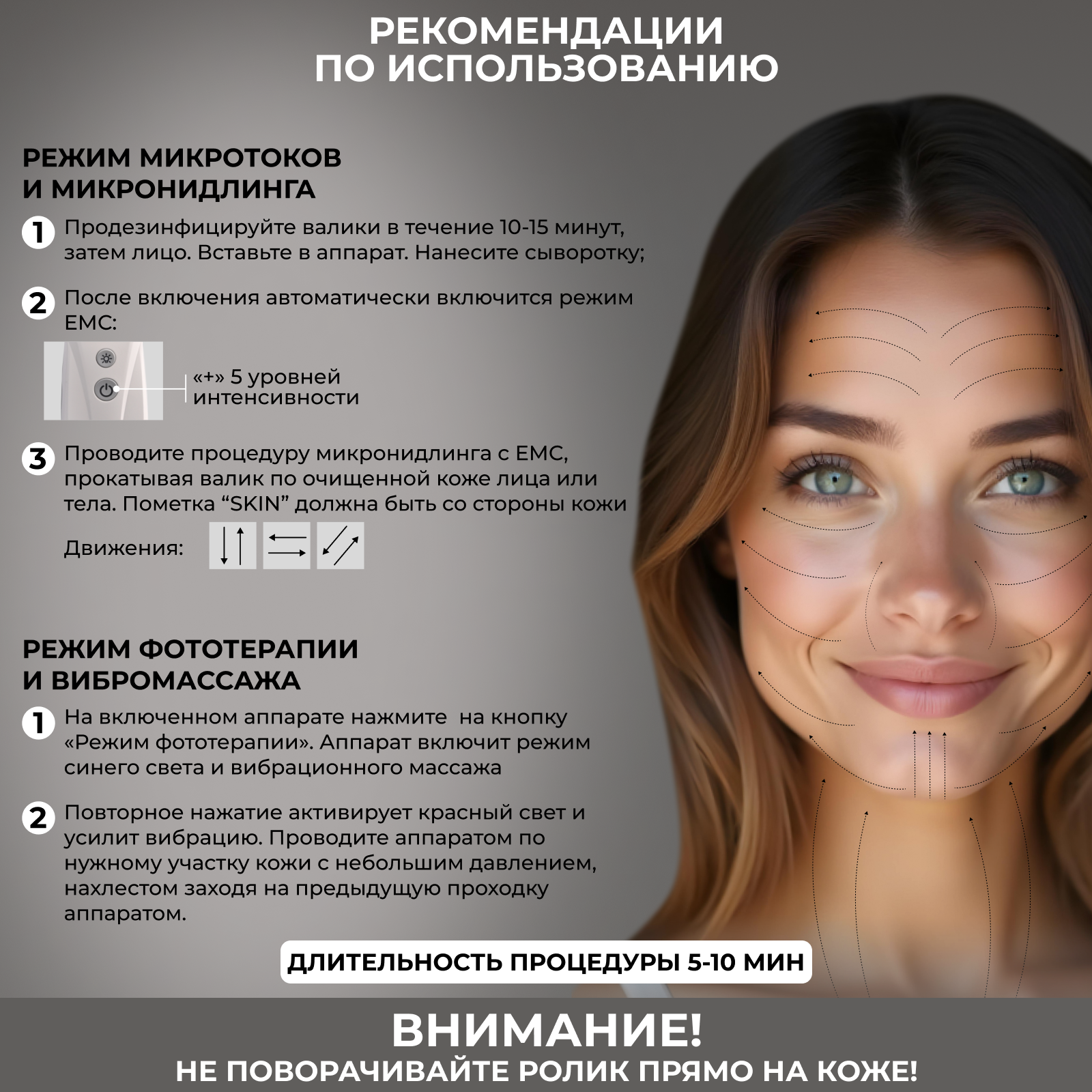 В данный момент использую роллер для кожи головы ,про эффективность пока говорить рано .Не вызывает ни какого дискомфорта ,после процедуры присутствует приятное чувство тепла .В дальнейшем попробую на коже лица )В общем классный прибор |