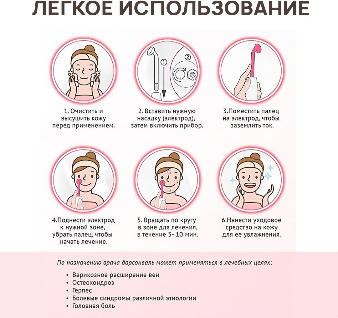 Купить Дарсонваль медицинский аппарат массажер для лица, волос и тела 4 насадки