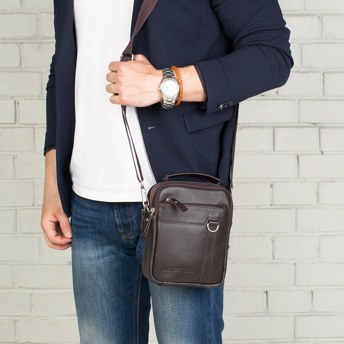 Мужская сумка через плечо Lakestone Drake Brown интересное: