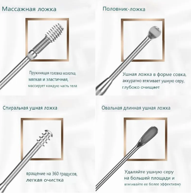 Набор инструментов для чистки ушей, 6 предметов. Ушные палочки. Ухочистка. интересное: