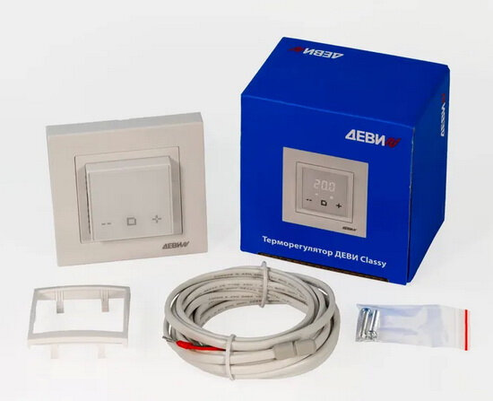 Терморегулятор ДЕВИ Classy c Wi-Fi, с датчиком пола, белый, 16А