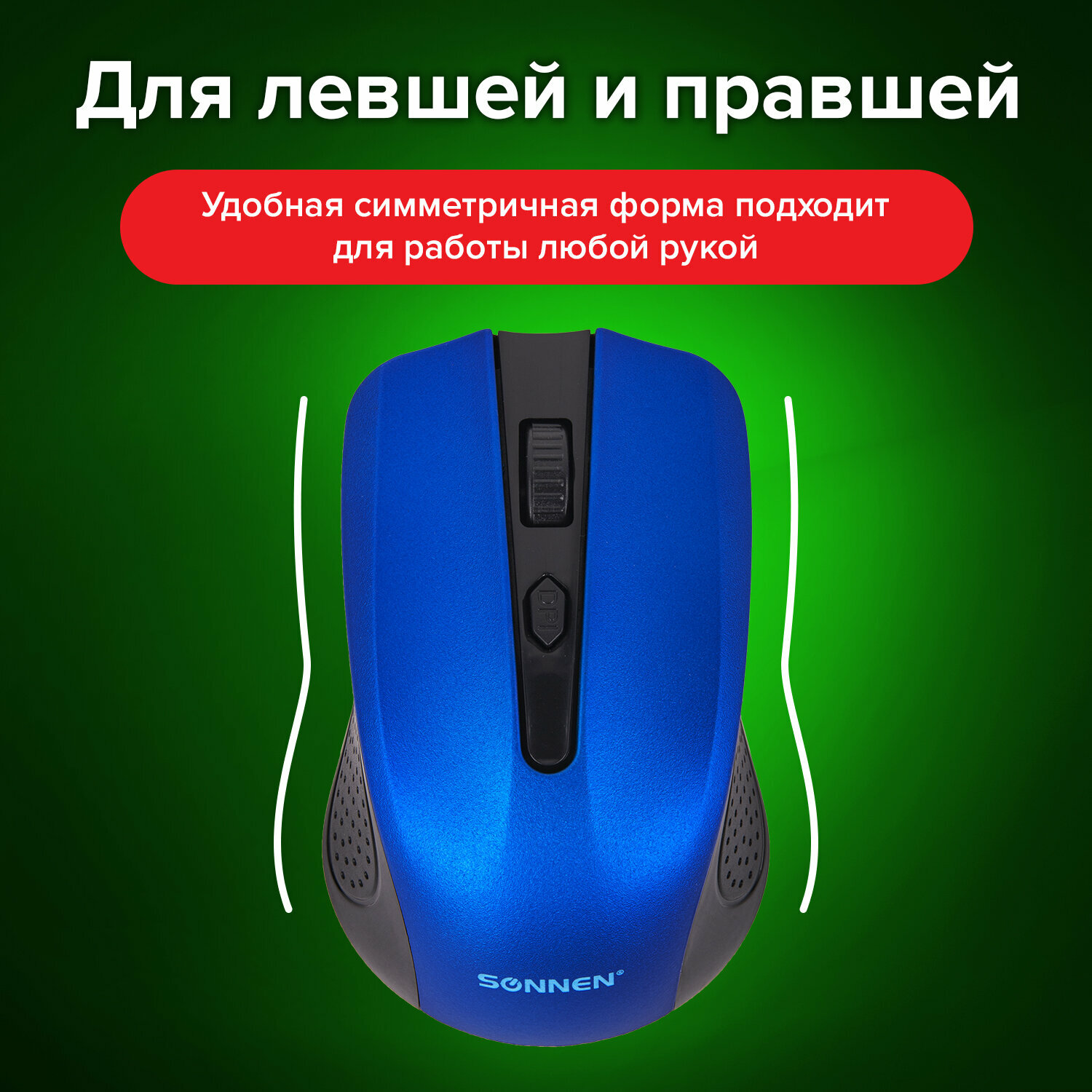 Мышь беспроводная SONNEN V99, USB, 800/1200/1600 dpi, 4 кнопки, оптическая, синяя, 513530 (арт. 513530)