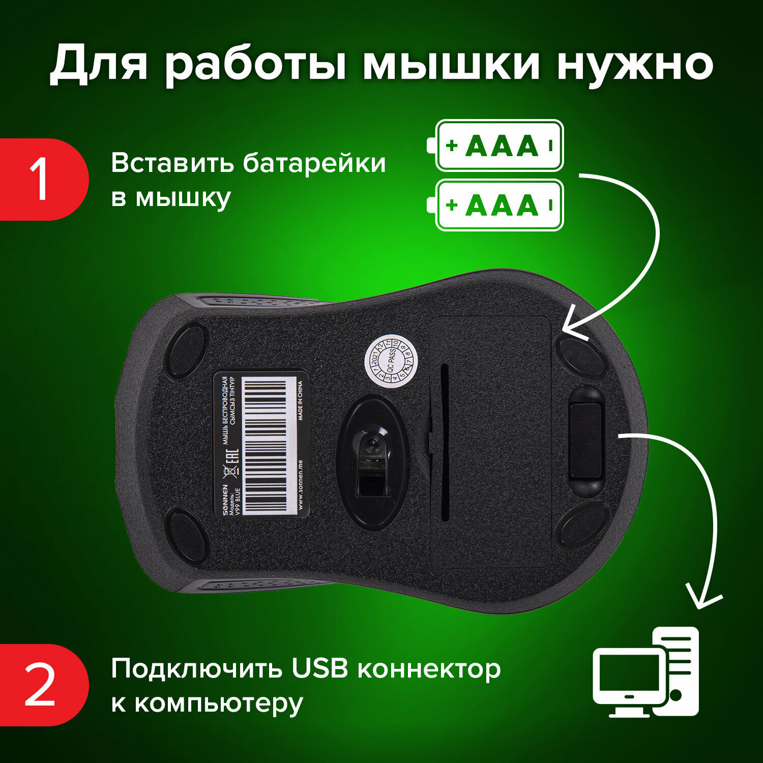 Мышь беспроводная SONNEN V99, комплект 2 шт., USB, 800/1200/1600 dpi, 4 кнопки, оптическая, синяя, 513530