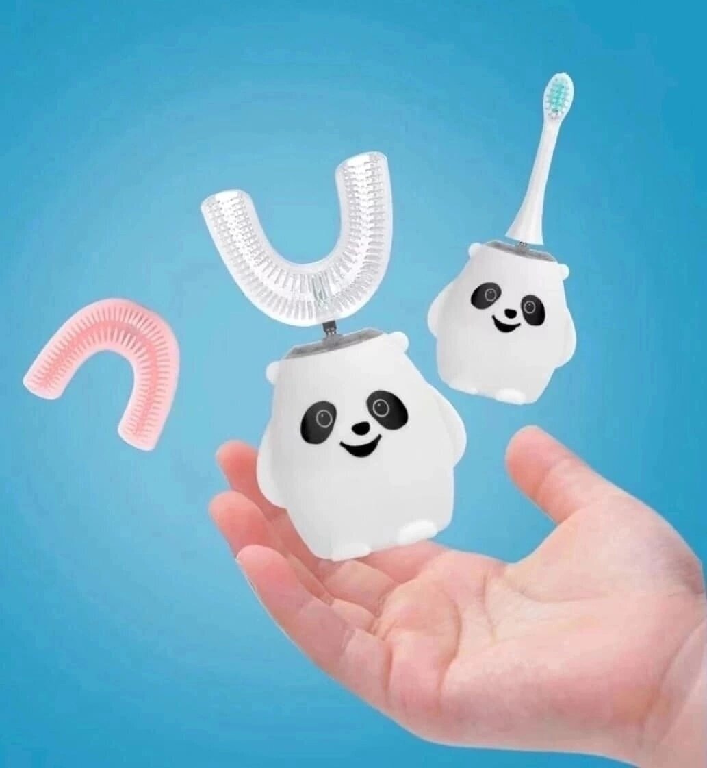 Электрическая U-образная зубная щетка панда, ультразвуковая щетка, для детей. Белый