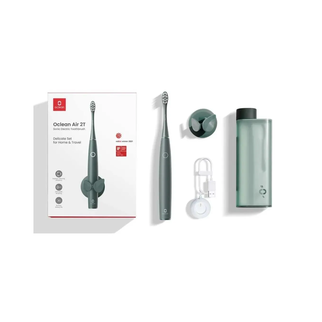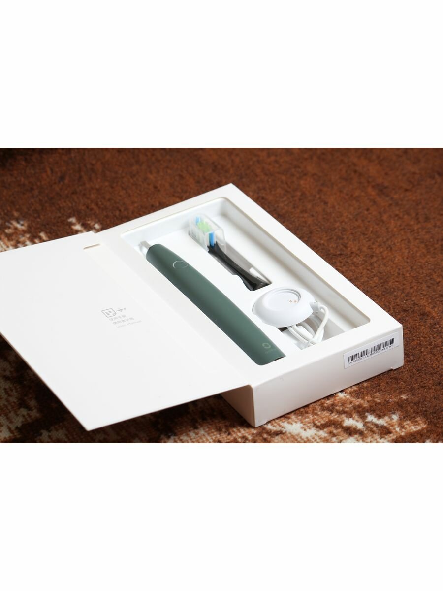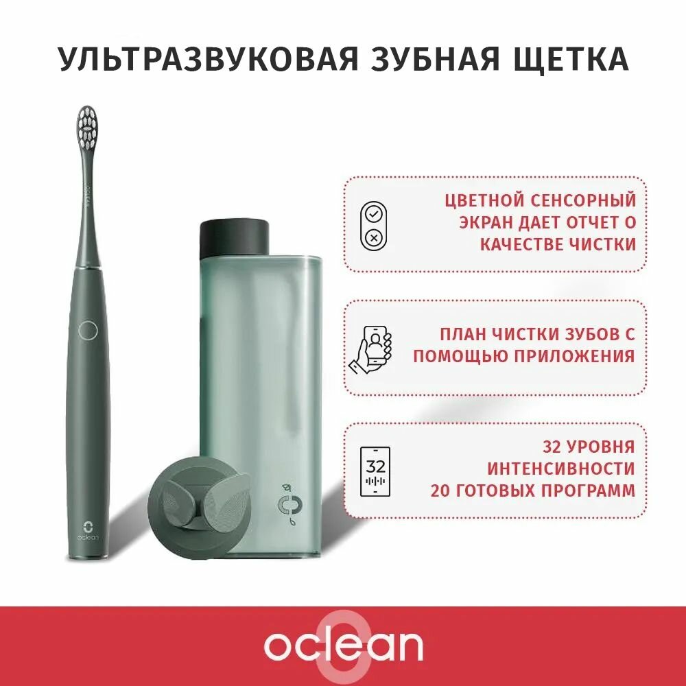 Электрическая зубная щетка Oclean Air 2Т, для чувствительных зубов, 1 сменная насадка, дорожный футляр, зарядка, ультразвуковая, низкий уровень шума, зеленый