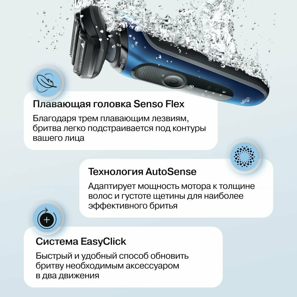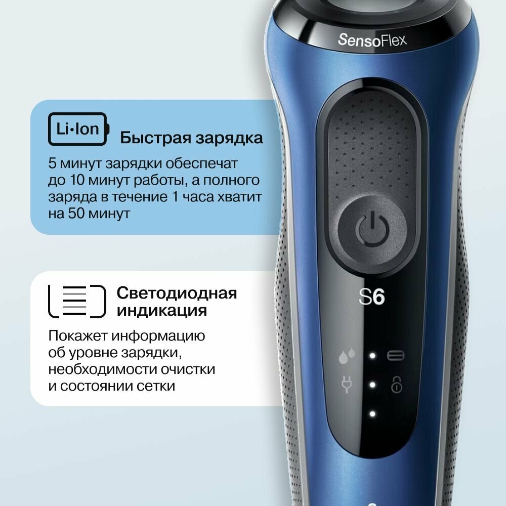 Электробритва Braun Series 6 61-B1500S, черная/синяя
