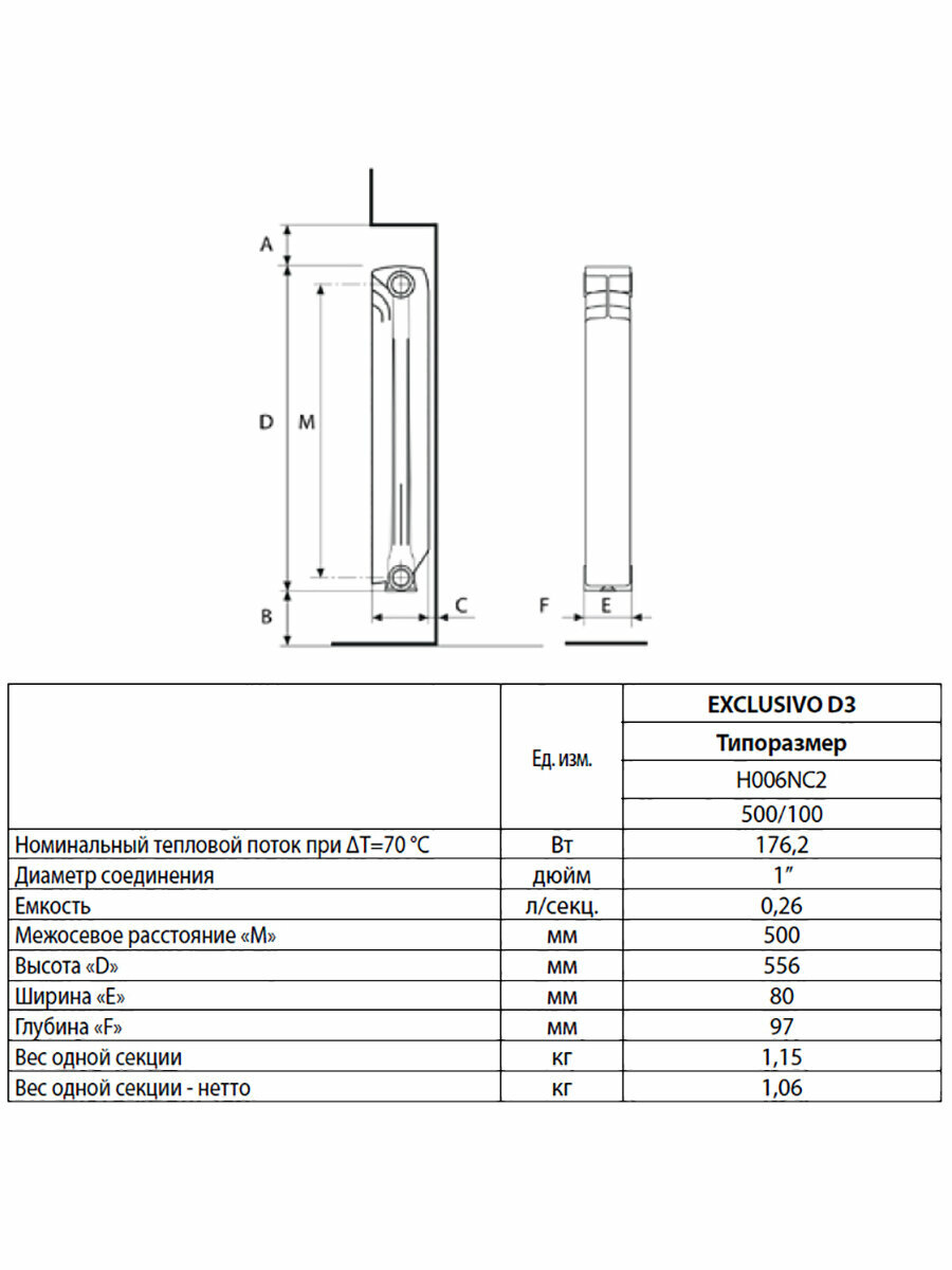 Радиатор алюминиевый Fondital Exclusivo D3 500/100 (97х556) белый 8 секций, 1408 Ватт интересное:
