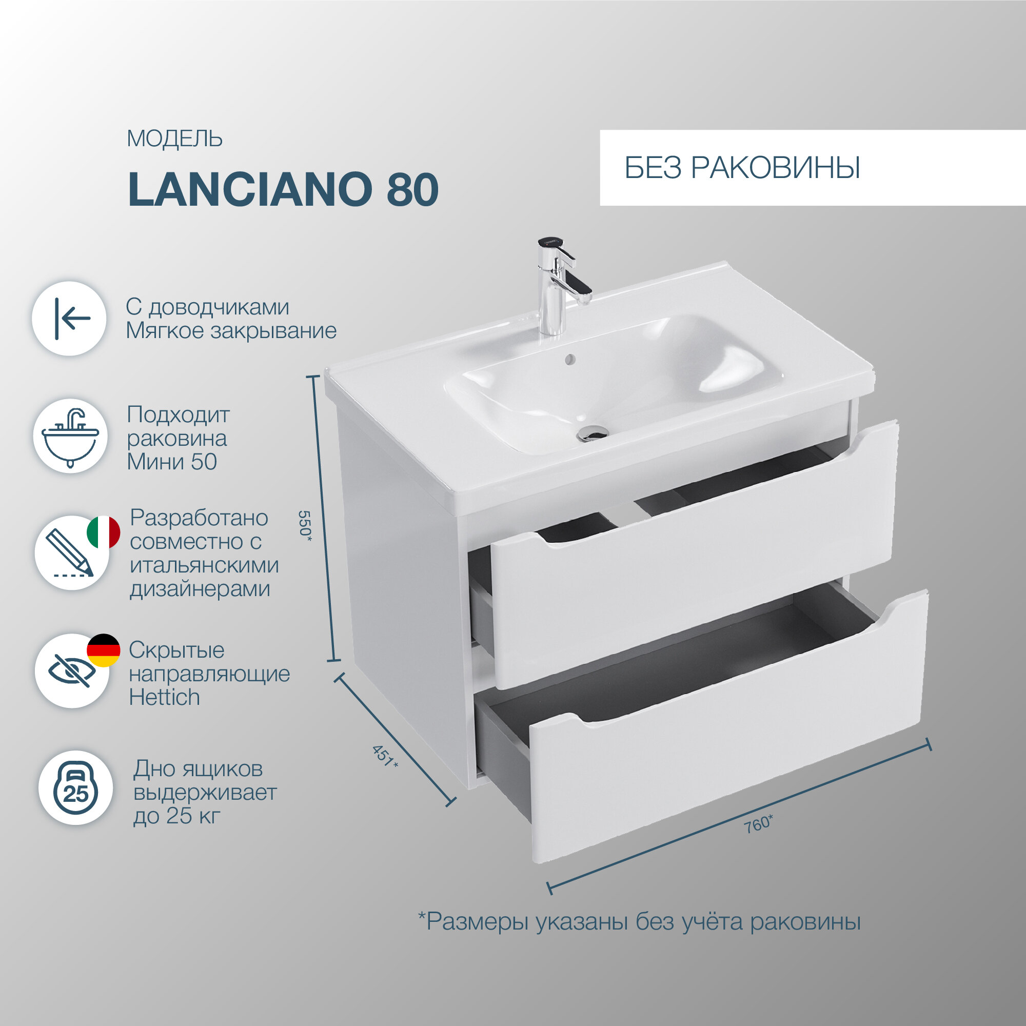 Тумба подвесная SanStar Lanciano 80 Без раковины для ванной комнаты, белая интересное: